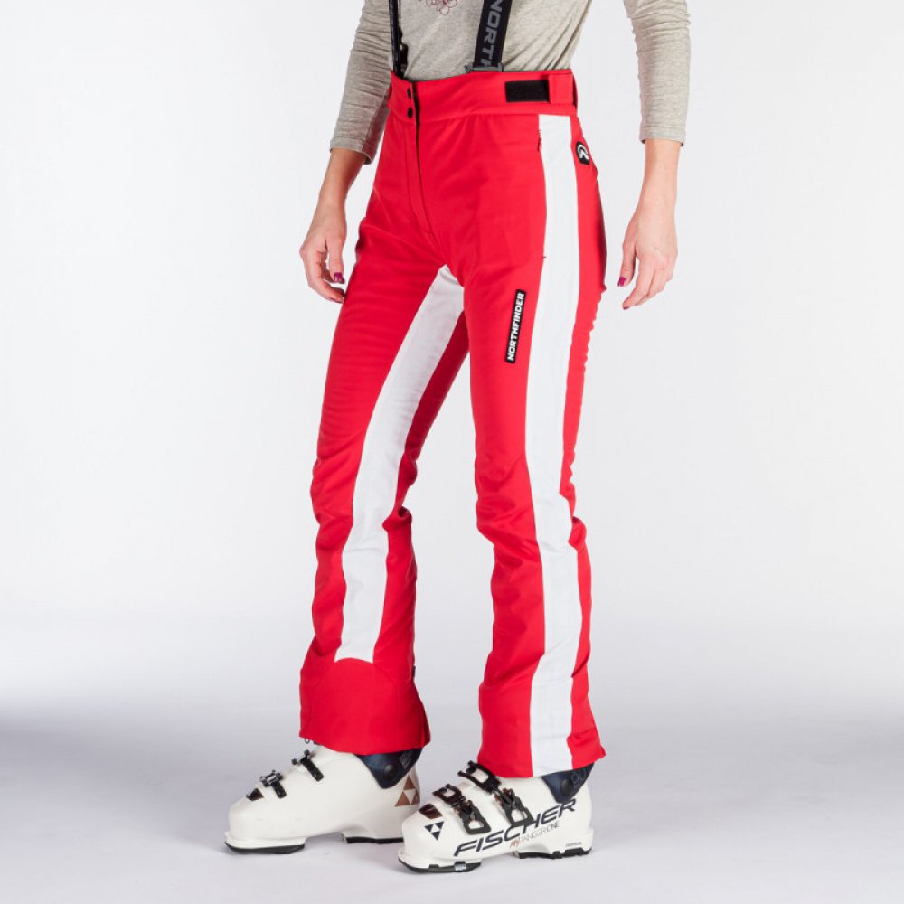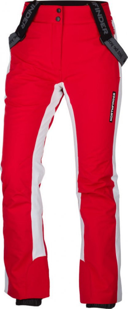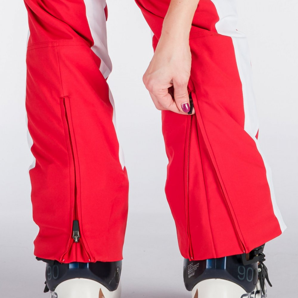 Lyžařské softshellové zateplené kalhoty jsou ideální pro aktivní lyžařky, které oceňují komfort a dobrou mobilitu. Vrchní materiál je vyroben z 2-vrstvého softshellu, který je nejen strečový, ale odolá i mírnému větru či vlhkosti: vodní sloupec 5 000 mm H₂O a prodyšnost 5 000 g/m²/24 h. Části po bocích a vnitřní strany stehen jsou vyrobeny z vysoce strečového materiálu s parametry 10 000 mm H₂O / 10 000 g/m²/24 h, což zvyšuje flexibilitu kalhot. Strečový panel vzadu na kříži podporuje komfort a při pohybu. Dvě přední kapsy na zip poskytují dostatek úložného prostoru. Rozzipovatelné spodky kalhot zjednodušují obouvání bot, a předtvarovaná kolena usnadňují pohyb. Spodek kalhot je zpevněn laminací z vnitřní strany, aby chránil před přetržením například hranou lyže. Kalhoty také obsahují vnitřní kamaše s gripem po celém obvodu, které brání pronikání sněhu dovnitř. Materiál: 92% polyester, 8% spandex na softshellových částech; 87% polyamid, 13% spandex na vysoce strečových částech.