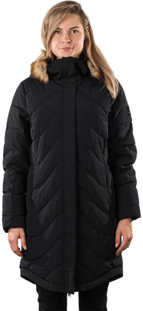 Dámská dlouhá bunda s odnímatelnou syntetickou kožešinou na kapuci je vhodná jak do města, tak i na hory. Díky kvalitnímu zateplení je bunda velmi teplá, vhodná i do tužších mrazů. Bunda je ošetřena kvalitní vodoodpudivou impregnací, která je zároveň ekologická a neobsahuje žádné pfc sloučeniny. Má dvě boční kapsy a malou skrytou kapsu na vnitřní straně. Střih je jemně tvarovaný v oblasti pasu s d...