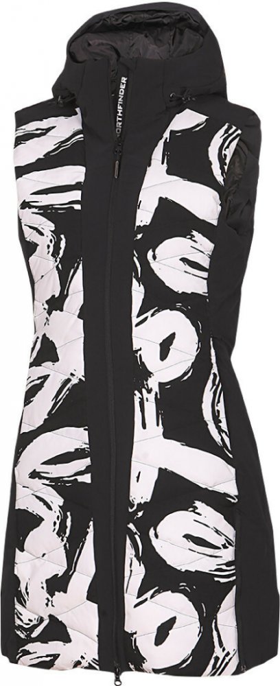 Dámska dlhá zatepľovacia vesta dokonale pripravená na chladné počasie. Prináša trendový dizajn spolu s funkciami a pohodlím. Je vyrobená z 2 materiálov. Oba sú z 2 vrstvového materiálu s membránou a hodnotami 10 000 mm H₂O / 10 000 g/m²/24 h, vďaka čomu dobre odoláva vetru aj vode pri zachovaní výbornej priedušnosti. Materiál bol navyše ošetrený ekologickou vodoodpudivou WR úpravou (PFC free). Vesta je zateplená a komfort zabezpečuje tiež fixná 2D kapucňa, dlhý strih a dve zipsovateľné vrecká na schovanie rúk.