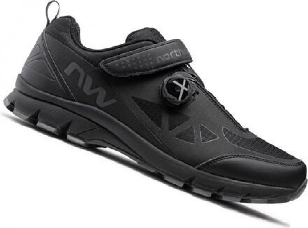 Northwave Corsair využijí zejména allmountain cyklisté, kteří se nebojí i náročnějších terénů. Tento typ boty s nízkou hmotností nabízí přilnavou podrážku, díky které bota výborně drží na pedálu a nemusíte se ani bát v extrémním terénu sesednout a kolo tlačit. Pokořte náročný terén na kole i pěšky Podrážka Damp Lite vyčnívá velmi nízkou hmotností zajištěnou použitím EVA materiálu. Přirodní gumu doplňuje vzorek inspirovaný pneumatikami na off-road, takže tretry nabídnou mimořádnou přilnavost a trakci i v nejsložitějších podmínkách. Kalibrovaná tuhost umožní v tretrách nejen jezdit na kole, ale také vyrazit na pěší túry. Připravte se na rychlý start Rychloupínací systém S.L.W. 2 spočívá ve stisknutí postranního knoflíku, který tretru buď upevní, nebo naopak bleskově rozváže. Kolečko se dočkalo přepracování a nyní je mnohem tenčí a lehčí, takže vás nijak nelimituje při jízdě. Naopak botu jen nazujete a bez delšího zdržování můžete vyrazit na cestu. Promyšlené maličkosti Díky lehké horní části a poutkům z měkkého materiálu vás nebude nic tlačit ani při pevně utažených botách. Rychloupínání doplňuje pásek na suchý zip. Boty tak dokonale sedí na noze. K ochraně vašich nohou při jízdě v terénu přispívají zesílená pata a špička. Nesporné výhody cyklistických treter Použití systému spd (tzv. nášlapy) vám přinese efektivnější šlapání díky možnosti táhnout nohou i směrem vzhůru a přesné nastavení polohy nohy na šlapátkách. Boty vám tak nebudou ze šlapátka ujíždět a vy se můžete soustředit pouze na svou trasu.