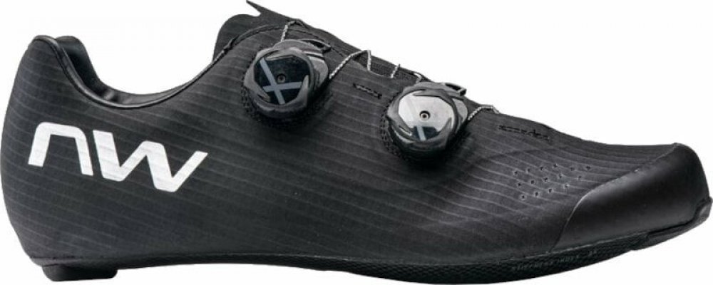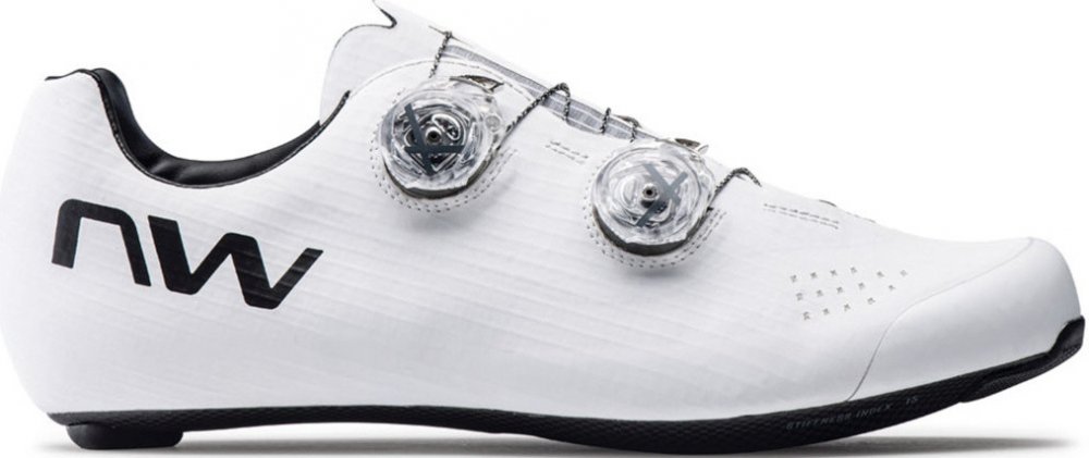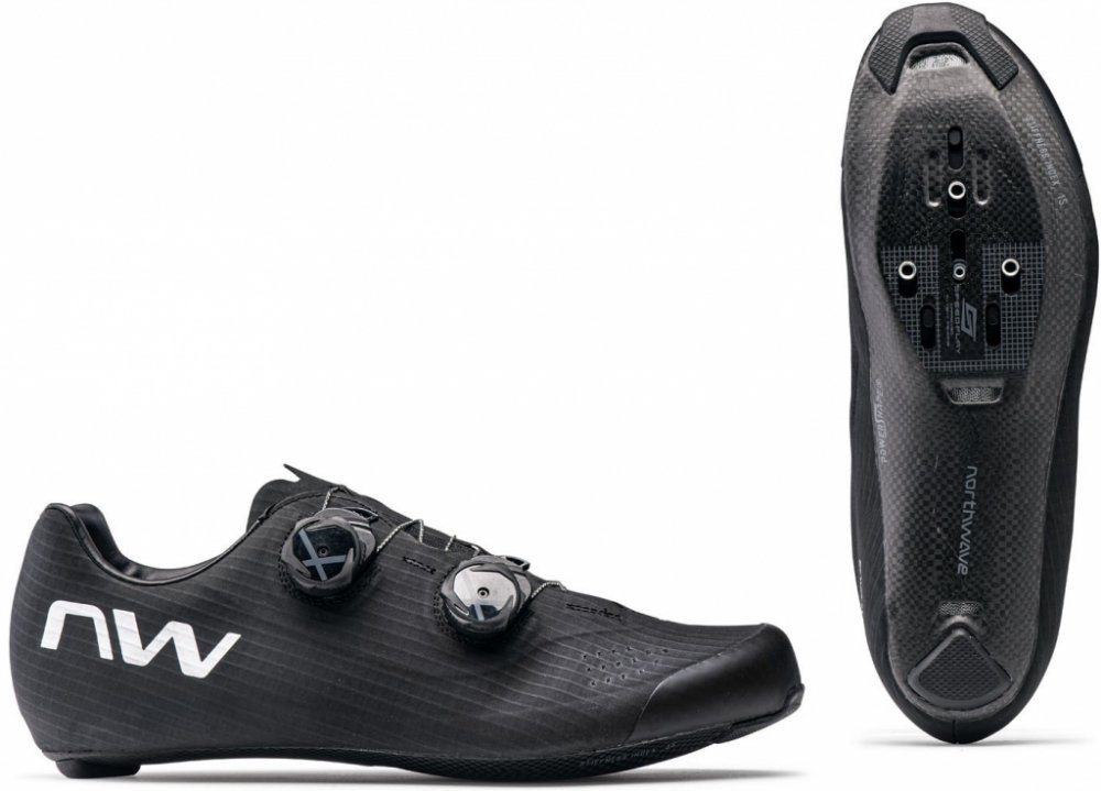 Pánská tretra NORTHWAVE Extreme PRO 3 pro výkonnostní silniční cyklistiku naplní vaše nejpřísnější očekávání na tuhost, pohodlí, praktičnost a nízkou hmotnost. | NORTHWAVE Extreme PRO 3 je silniční tretra s dvojitým BOA upínáním, ultra tvrdou podrážkou, prodyšným perforovaným svrškem a dvojitou stélkou pro váš maximální výkon a pohodlí zároveň. Podešev Powershape Carbon 15 je vyrobena výhradně z jednosměrných uhlíkových vláken s indexem tuhosti 15 a systémem Powershape, který poskytuje klenbě podporu a kompletní přenos síly na pedál. Kompatibilní s adaptérem NW Speedplay/Wahoo pro snížení výšky mezi nohou a pedálem. Svršek se strukturou ARS (Anatomic Reticular Support) a vnějším PU skeletem obepíná chodidlo a přenáší každý watt síly na pedál. Dvojité kolečko SLW3 se chlubí postupným intuitivním uvolňováním pomocí jediného tlačítka. Síťovaná vložka zabraňuje přehřívání i v nejteplejším letním počasí a dvojitá stélka různé hustoty zajišťuje bezchybné přizpůsobení (tloušťka 3 mm a 5 mm). Perforovaný svršek podporuje maximální ventilaci.