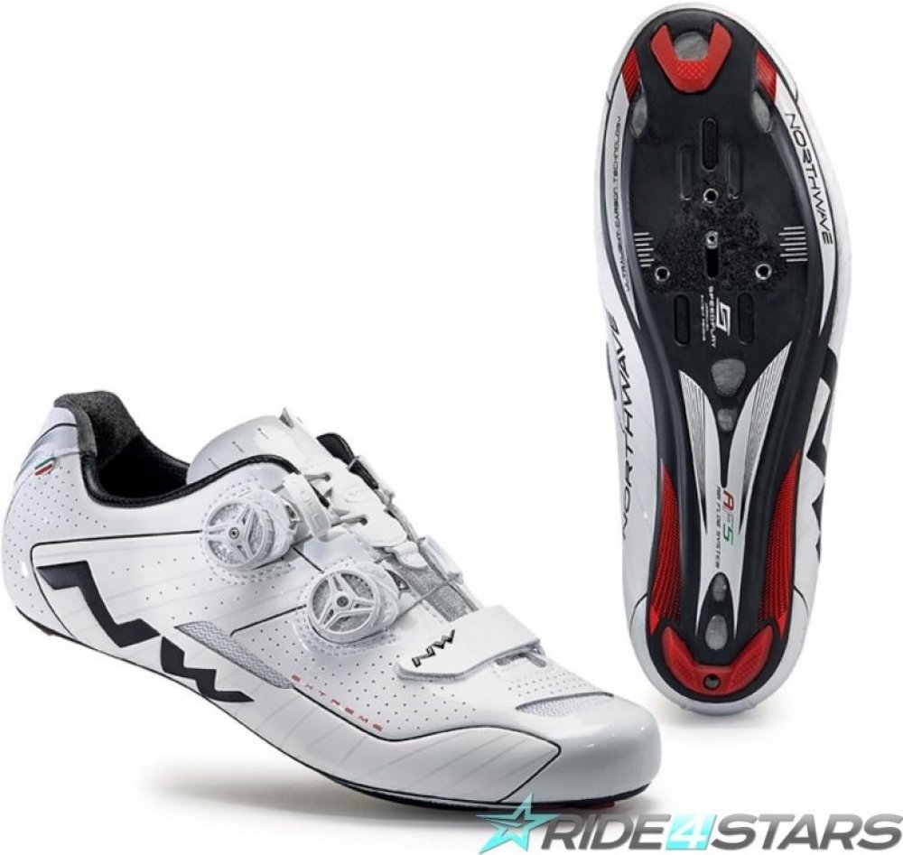 Northwave tretry s ultralehkou karbonovou podrážkou vyrobenou s nestrukturalozovaného karbonu pro optimální přenos energie od špičky k patě.