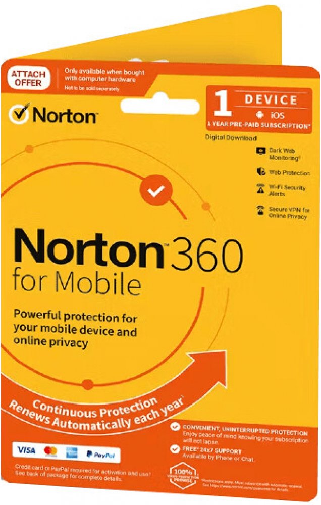 Norton 360 pro Mobily nebo tablety – určeno pro jednoho uživatele na 1 zařízení na 12 měsíců Zabezpečení zařízení Ochrana proti zranitelnostem, které kyberzločinci používají k převzetí kontroly nad vaším zařízením nebo ke krádeži vašich osobních údajů. Upozorňuje v případě, že je váš operační systém zastaralý, abyste mohli provést aktualizaci. Bezpečnostní upozornění Wi-Fi Získejte upozornění na sítě Wi-Fi, na které útočí kyberzločinci, kteří by mohli odposlouchávat vaše připojení Wi-Fi, aby zašifrovali vaše osobní údaje nebo infikovali vaše zařízení malwarem. PORADCE APLIKACE PRO GOOGLE PLAY Kontroluje aplikace před stažením a poté pomáhá chránit před mobilními hrozbami, jako je malware, adware a úniky soukromí. ZABEZPEČENÁ VPN Pomáhá zabezpečit data, která odesíláte a přijímáte prostřednictvím připojení Wi-Fi, a to i s veřejnou sítí Wi-Fi, a pomáhá tak zabránit kyberzločincům v zachycení vašich dat. WEBOVÁ OCHRANA Pomáhá detekovat a chránit vás před vstupem na podvodné a škodlivé webové stránky ZABEZPEČENÍ SMS Pomáhá identifikovat textovou zprávu SMS, která může obsahovat phishingové útoky. Tyto útoky využívají odkazy na podvodné stránky, které kompromitují vaše osobní údaje. Platí pouze pro textové zprávy SMS. Nevztahuje se na zprávy odeslané prostřednictvím Apple iMessage. Android: Ne všechny aplikace pro zasílání zpráv pro Android podporují tuto funkci. WhatsApp a Facebook Messenger podporuje tyto funkce. POŽADAVKY NA SYSTÉM Ne všechny funkce jsou dostupné na všech zařízeních nebo operačních systémech. Norton™ 360 for Mobile podporuje zařízení Android™ a iOS. Je vyžadováno připojení k internetu, doporučujeme vysokorychlostní připojení. Zařízení iPhone nebo iPad, ve kterých je spuštěna aktuální a předchozí dvě verze systému Apple iOS. Oprávnění k zabezpečení zařízení Norton a aplikaci Norton Secure VPN Počítač PC, počítač Mac nebo mobilní zařízení: Počítače PC, počítače Mac, systém Android, iPady a iPhony Operační systémy Android Android 8.0 nebo novější S nainstalovanou aplikací Google Play. Není podporován režim pro více uživatelů. Systém ColorOS 7.1 nebo novější. S nainstalovanou aplikací Google Play. .