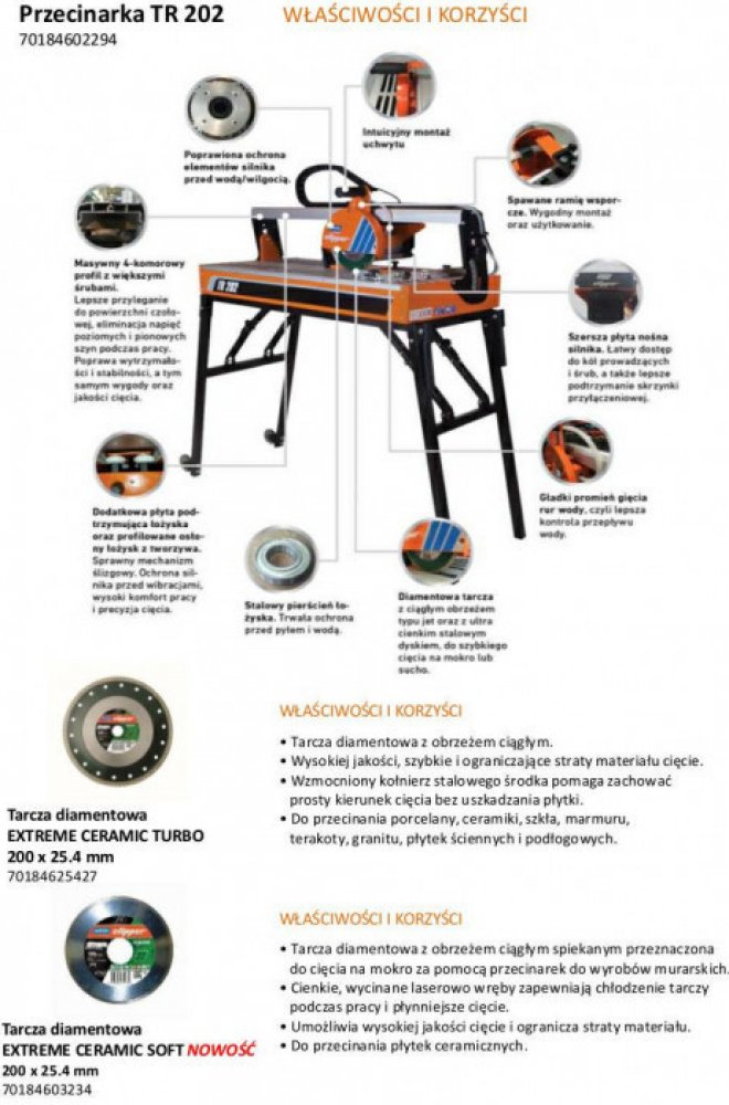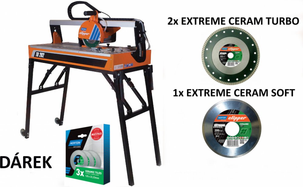 Obkladačská pila s vysokým výkonem pro práci jak za mokra, tak i za sucha. Pila TR202 má dlouhou životnost a vysoký výkon jak při operacích za mokra, tak i za sucha a je určena pro širokou škálu různých druhů dlaždic. Tak jako u jiných strojů Clipper, uživatel okamžitě ocení důraz kladený na detaily a kvalitu materiálu použitého ke konstrukci pily. Pila a její náhradní díly odpovídají vysokým stan...