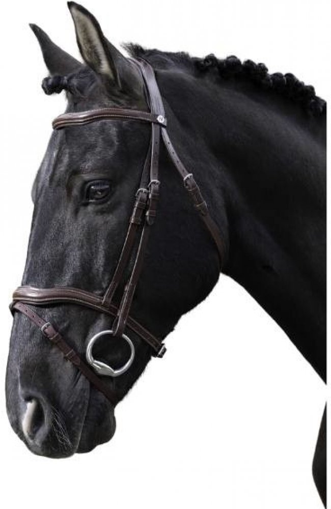 Kvalitní kožená anatomicky tvarovaná uzdečka pro koně s anglickým nánosníkem.