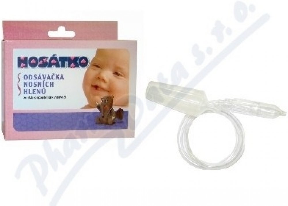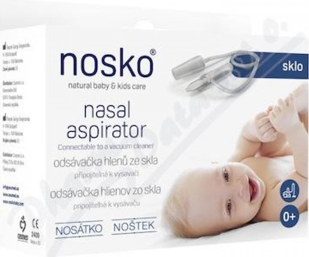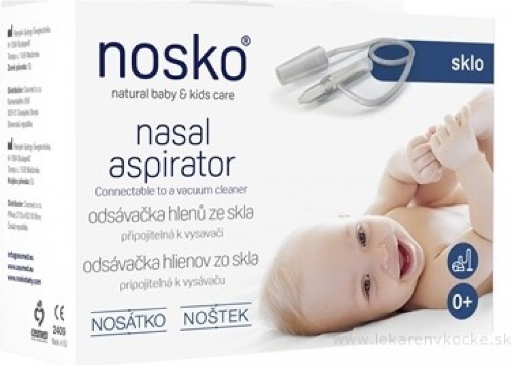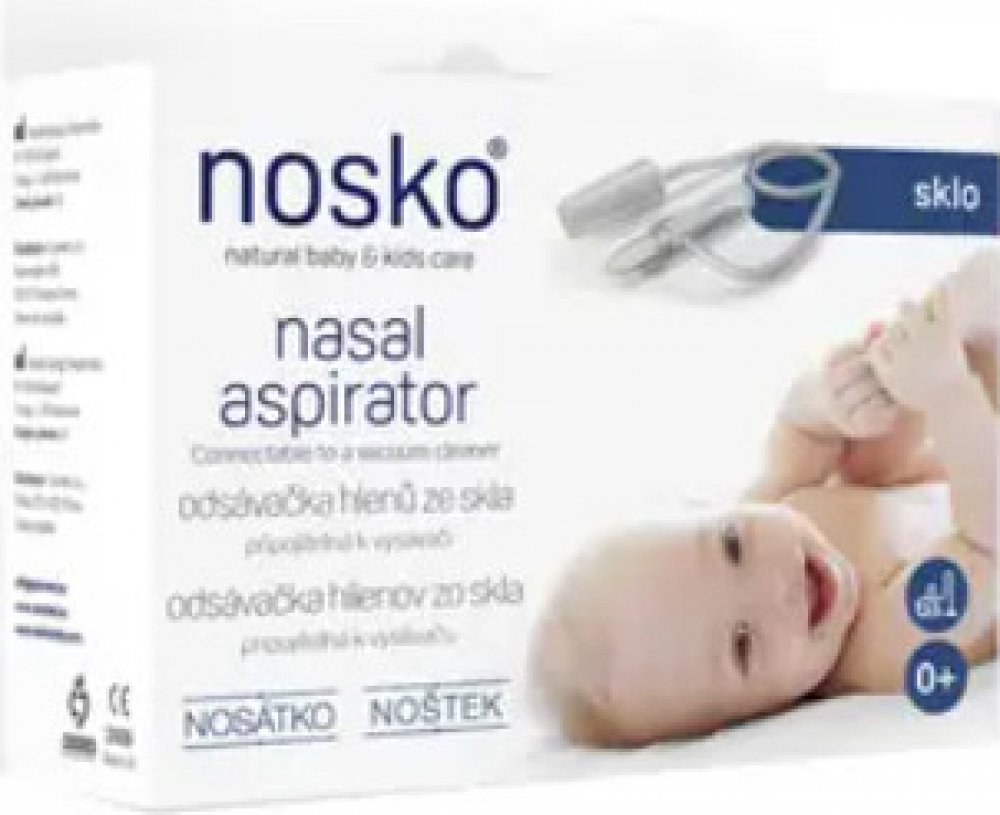 NOSÁTKO Odsávačka nosních hlenů je odsávačka hlenů s napojením na domácí vysavač. Sací hlavice je vyrobana ze skla, ostatní komponenty z plastu. Odsávačka se používá na odstranění nashromážděných hlenů z nosních dutin u malých dětí. Je připojitelná k běžným typům domácích vysavačů. Používáním odsávačky se podstatně urychlí hojení podrážděných dýchacích cest a ulehčí se dýchání. Odsávačka je sterilizovatelná a byla klinicky testována.