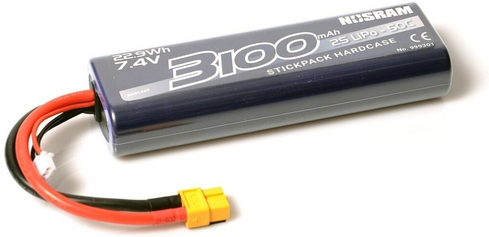 NOSRAM 3100mAh - 7.4V - 50C LiPo Car Stickpack Hardcase - XT60 konektor Nosram. RC baterie. S XT60 konektorem, kapacita 3100mAh, 50C vybíjecí proud (krátkodobě 60C), balanční konektory XH-2S, napětí 7,4V/2S, délka: 134mm, šířka: 45,0mm, výška: 24mm, váha: 193-195g.