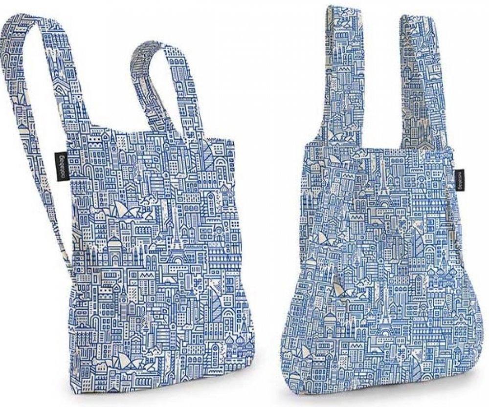 Cenami ověnčený design je podpořený funkčností a kvalitou. Nákupní batoh či taška je vyroben ze 75% z bavlny a z 25% z ripstop nylonu, který při poškození brání párání materiálu. Materiál je voděodolný a jednoduše pratelný. A grafika? Dokonalá. Tašky jsou poseté kolážemi z významnými světovými monumenty jako je opera v Sydney, pařížská Eiffelovka, nebo chrám Sagrada Familia v Barceloně.