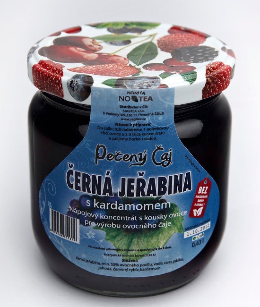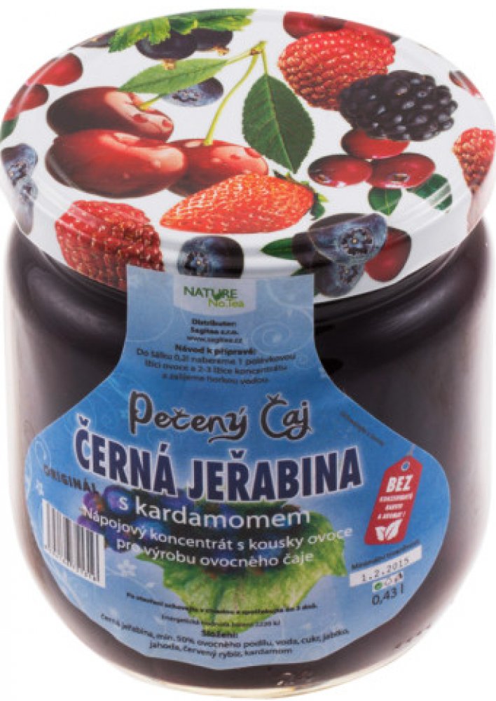 Složení: Černá jeřabina, kousky jabka, jahod, černého rybízu a kardamon, voda, (50% ovocného podílu)