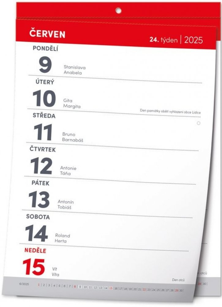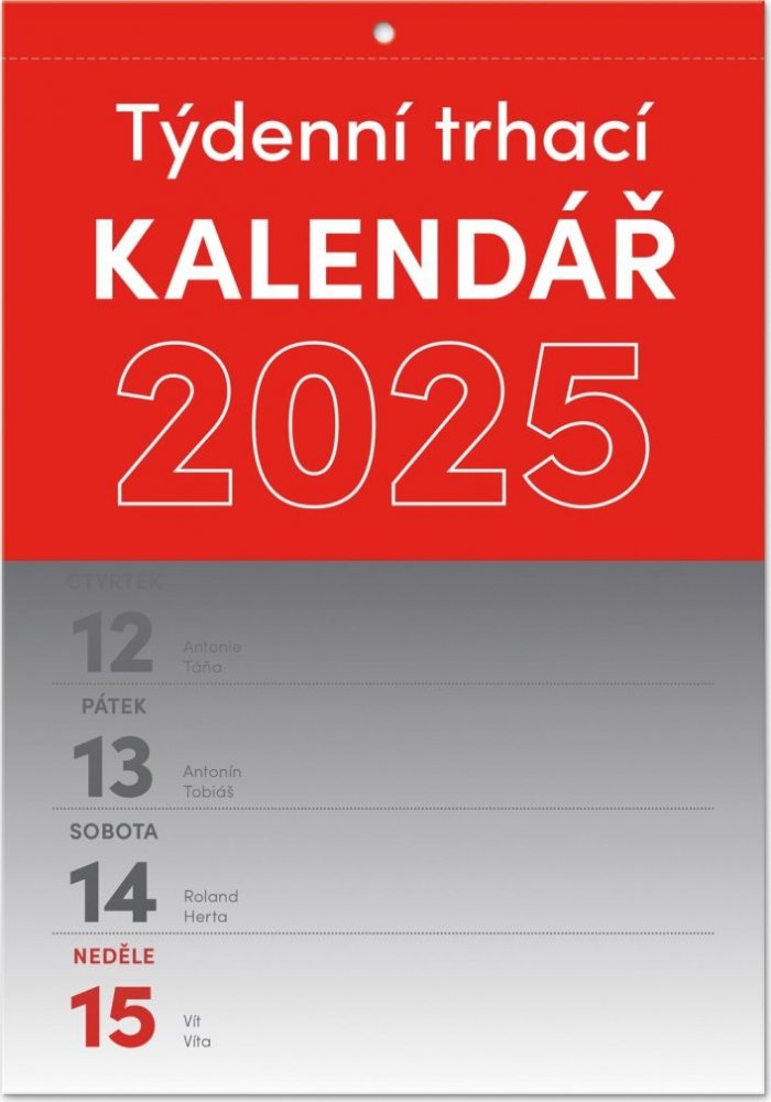 Popis : Nástěnný trhací kalendář, s nímž vám rok doslova uteče před očima. Praktický formát A5 je vhodný do každé místnosti. Týdenní kalendárium obsahuje česká jména, svátky a památné dny a přehled aktuálního měsíce u každého týdne.Druh sortimentu : Kalendář, Název : Trhací týdenní kalendář 2025 - nástěný kalendář, Jazyk : Čeština,
