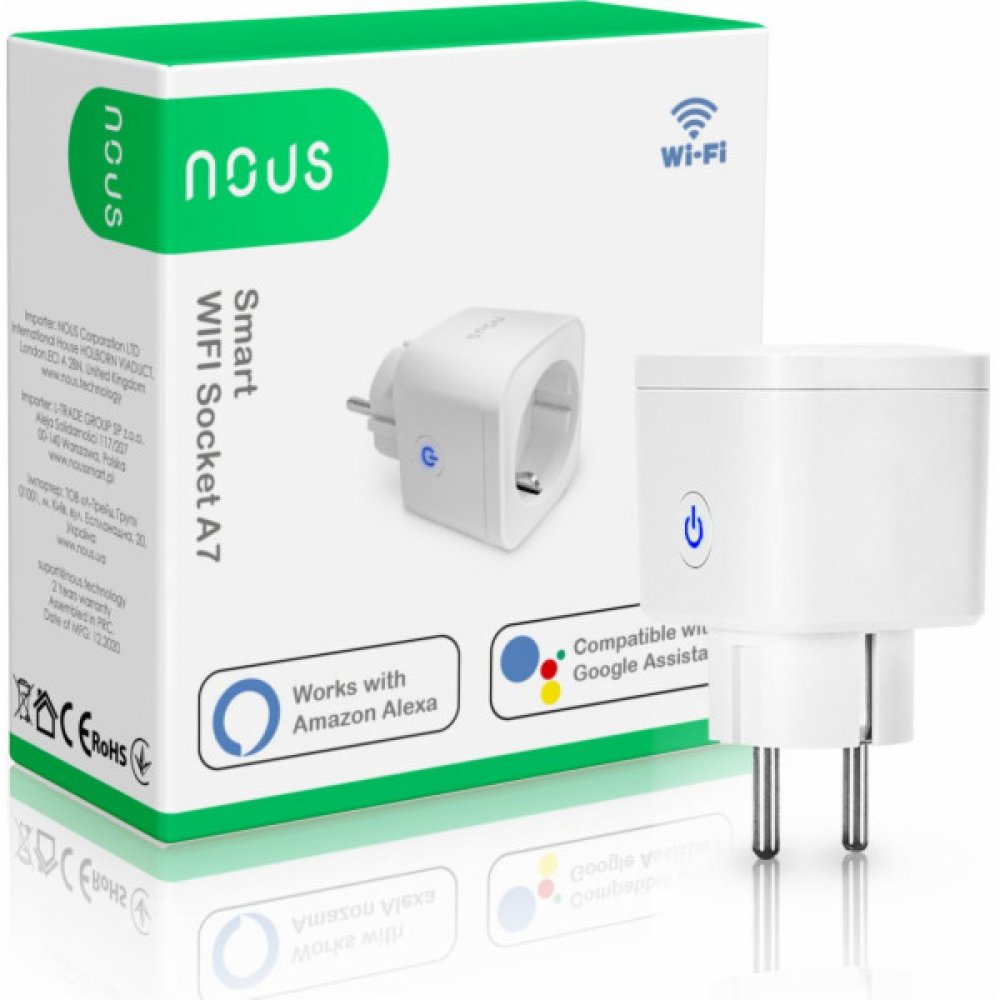 Chytrá zásuvka Nous A7 umožňuje dálkově ovládat všechna elektrická zařízení v domácnosti pomocí aplikace Nous Smart Home nebo Tuya Smart. Spolupracuje s aplikacemi Google Assistant a Amazon Alexa. Umožňuje nastavit časovač zapnutí nebo vypnutí, konfigurovat rozvrhy a umožňuje vytvářet vlastní scénáře.