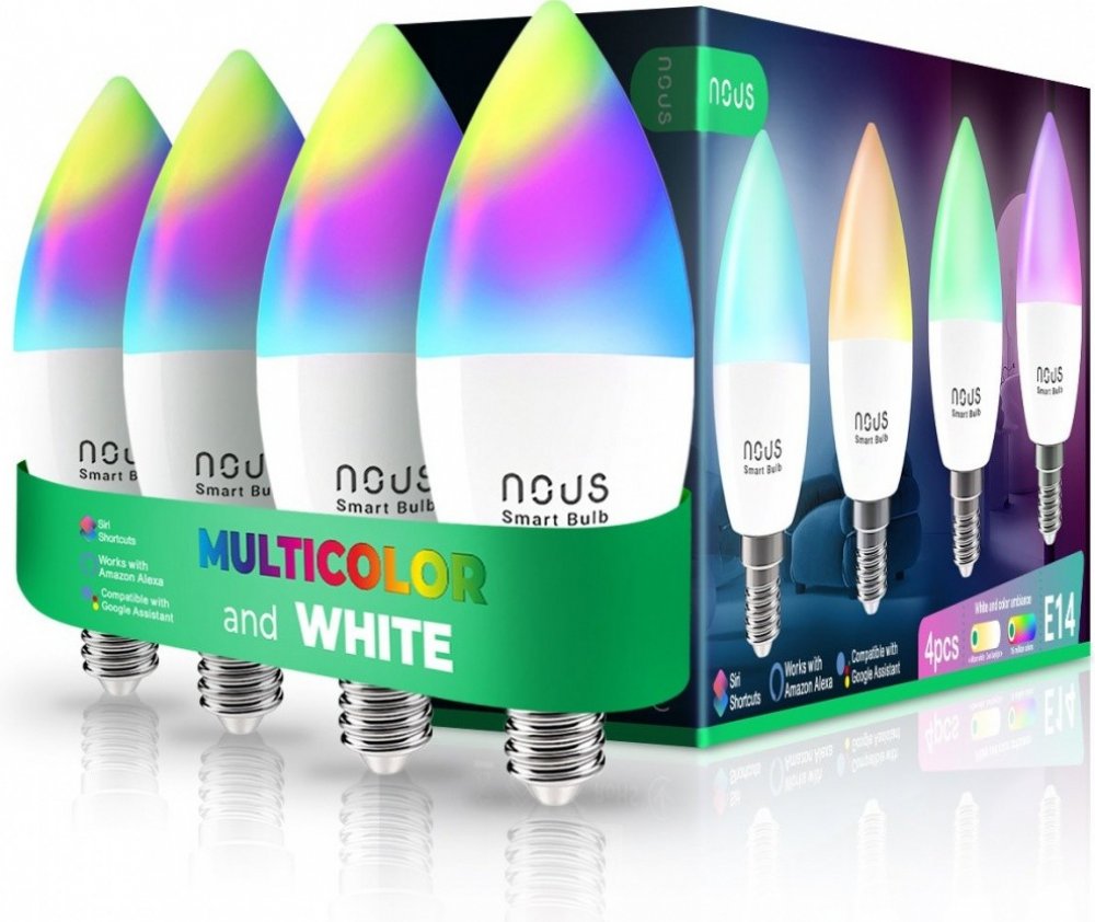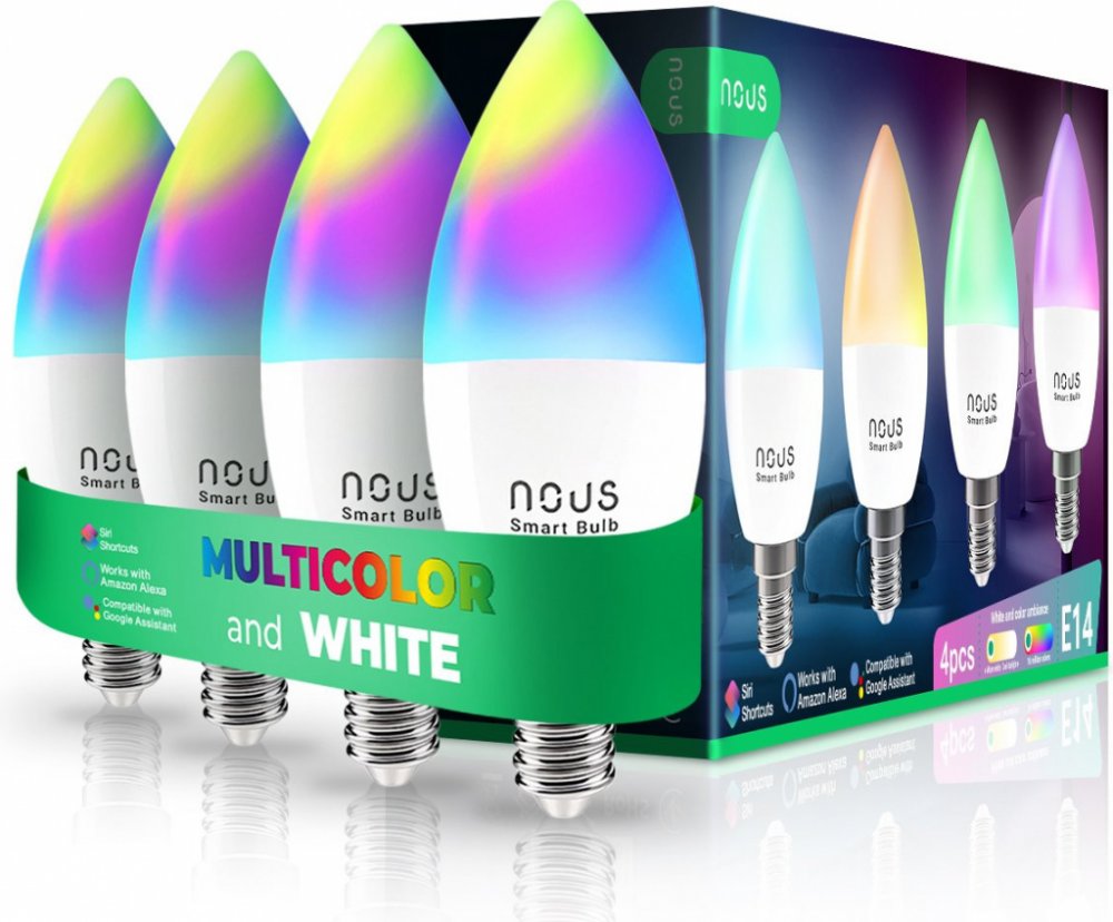 Sada 4 ks LED SMART RGB žárovek, které lze ovládat pomocí mobilní aplikace. Změňte svou náladu jediným kliknutím. Bez ohledu na to, co děláte, chytrá žárovka NOUS P4 Vám pomůže okamžitě změnit osvětlení v místnosti. Můžete to udělat odkudkoli. Systém NOUS Smart Home umožňuje také hlasové ovládání prostřednictvím Amazon Alexa a Google Assist...