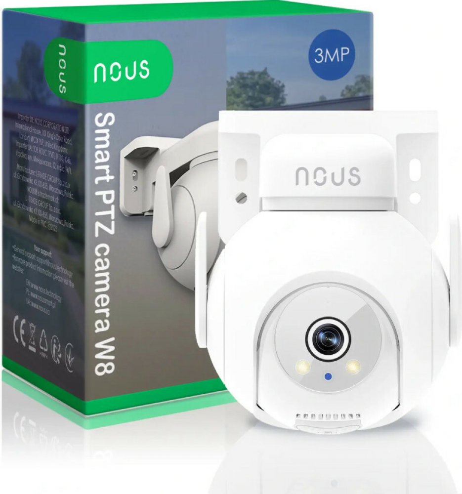 Chraňte svůj majetek s inteligentní PTZ kamerou Nous W8. Nabízí ostrý 3MP obraz, 355° otáčení a automatické sledování pohybu. Díky barevnému nočnímu vidění do 15 m, obousměrnému zvuku a okamžitým notifikacím na telefon vám nic neunikne. Záznamy ukládá na microSD kartu nebo do cloudu. Jednoduché ovládání přes aplikaci NOUS Smart nebo Tuya vám dává plnou kontrolu odkudkoli. Spolehlivá vnější ochrana za každých podmínek.