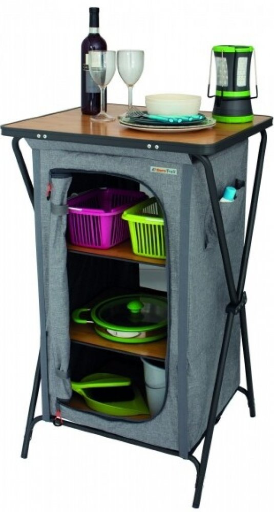 Kempingová skříň Nova Lucera je ideální volbou pro každého, kdo potřebuje funkční a stylový úložný prostor na svých výletech, ať už jde o kempování, přípravu jídla nebo údržbu pořádku ve vašem kempu, stanu nebo karavanu. Díky kvalitnímu materiálu, nastavitelným nohám, kompaktnímu skládání a prostorným policím je tato skříň skvělým společníkem na každém vašem dobrodružství.