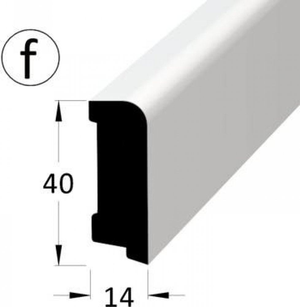 Podlahová - soklová lišta 40x14R5 fólie bílá, 2,4mLišta má smrkové/borové jádro, které je potažené bílou fólií. Doporučená montáž: lepení