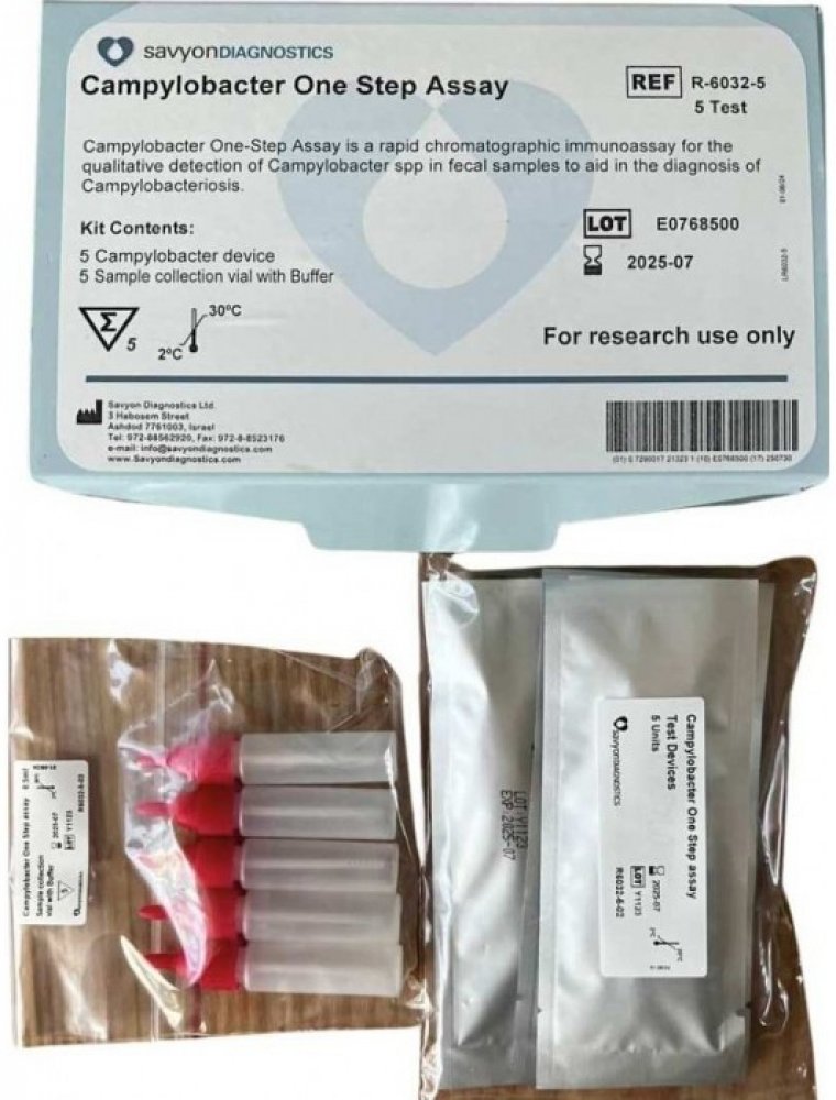 Každá souprava Campylobacter One-Step Assay obsahuje všechno potřebné k provedení 1 testu.