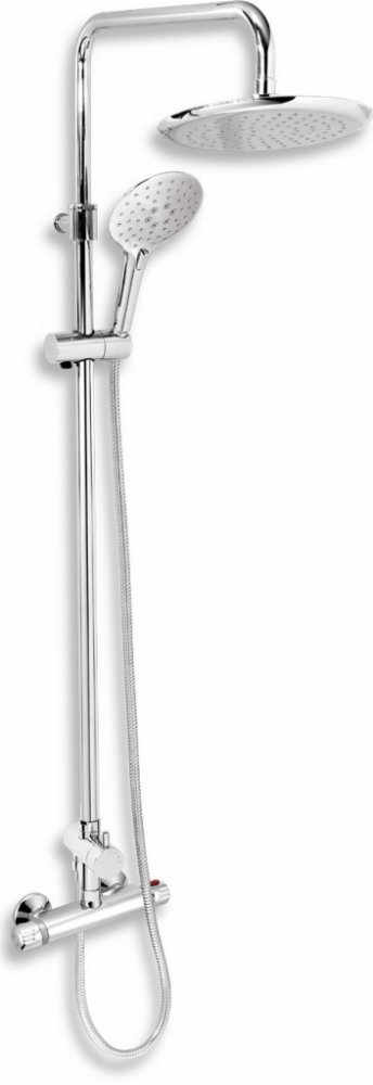 Sprchová souprava včetně termostatické baterie Prvotřídní chromové provedení. Sada obsahuje nástěnou termostatickou baterii AQUAMAT 2661/1,0 s horním vývodem s roztečí 150 mm a odolnou termostatickou kartuší s prodlouženou zárukou 7 let. Součástí balení je hadice 150 cm, hlavová sprcha s průměrem 230 mm a 3-polohová ruční sprcha. Výška setu je 1070 - 1260 mm. Umožňuje nastavit odchýlení horního úc...