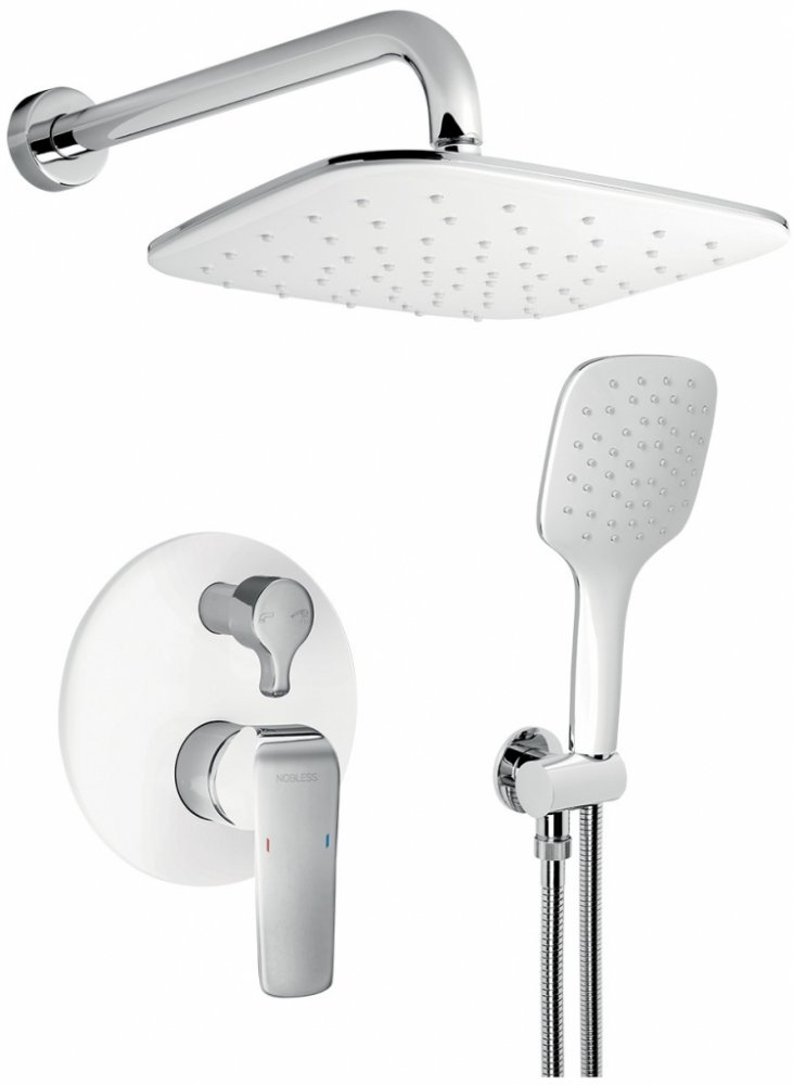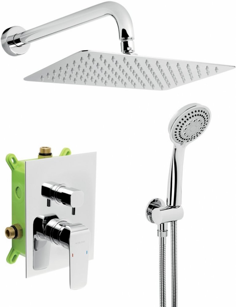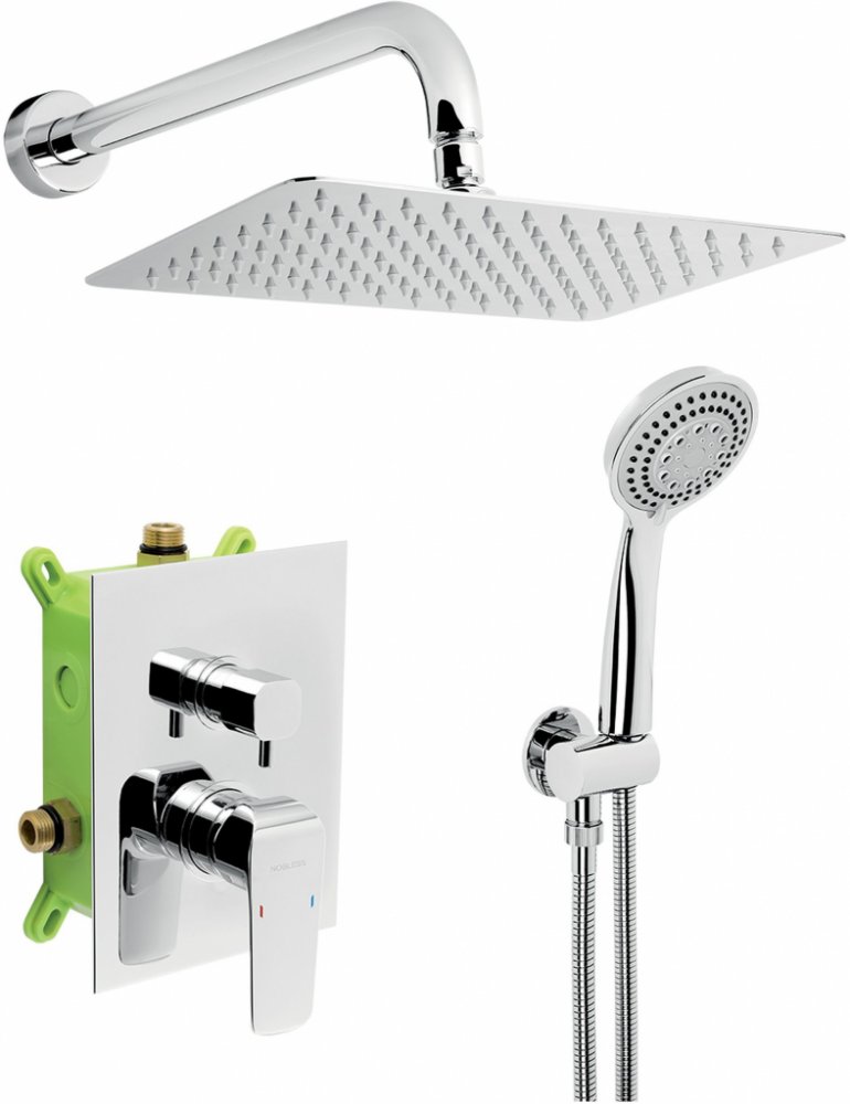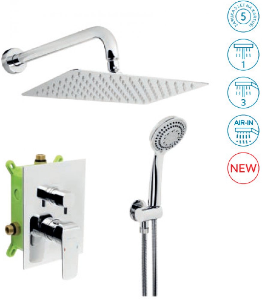 Sprchová podomítková sada s příslušenstvím v provedení chrom. Box je dodávaný komplet včetně krytu a ovládací páky. Sada obsahuje podomítkovou sprchovou baterii BOX38051R,0 s kvalitní keramickou kartuší s prodlouženou zárukou 5 let a keramickým přepínačem, kovovou hadici H/7000,0 150 cm, ramínko ze zdi RAM350,0 v délce 350 mm, hlavovou sprchu ve SLIM designu RUP/203,4 v rozměru 300 x 200 mm, 3-pol...