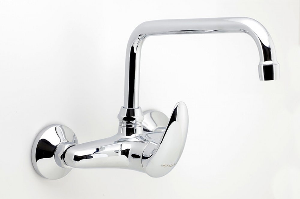 páková umyvadlová/dřezová nástěnná baterie s plnou pákou, keramická kartuše KEROX 35 mm, průtok , G 1/2", povrch chrom