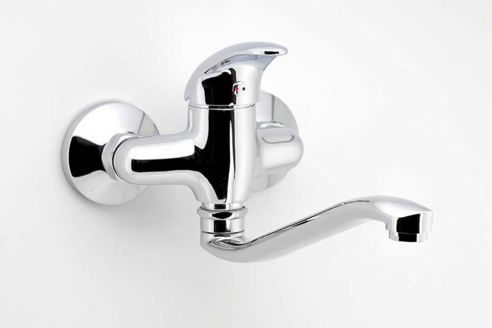 - Nástěnná dřezová baterie s roztečí 100 mm – Standardní rozměr pro snadnou instalaci.