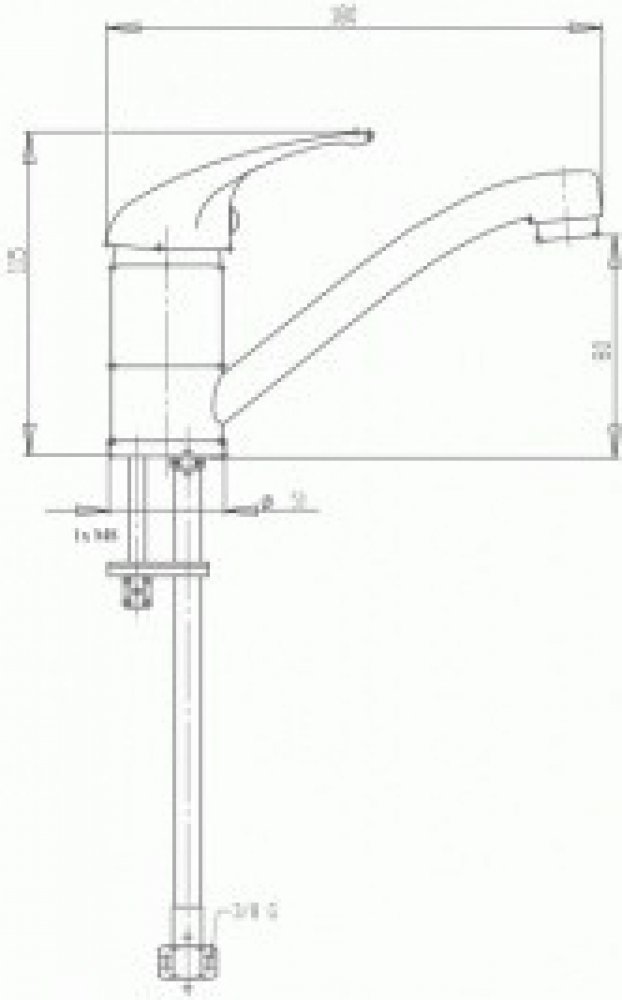 Stojánková dřezová baterie. Délka otočného ramínka 150 mm.