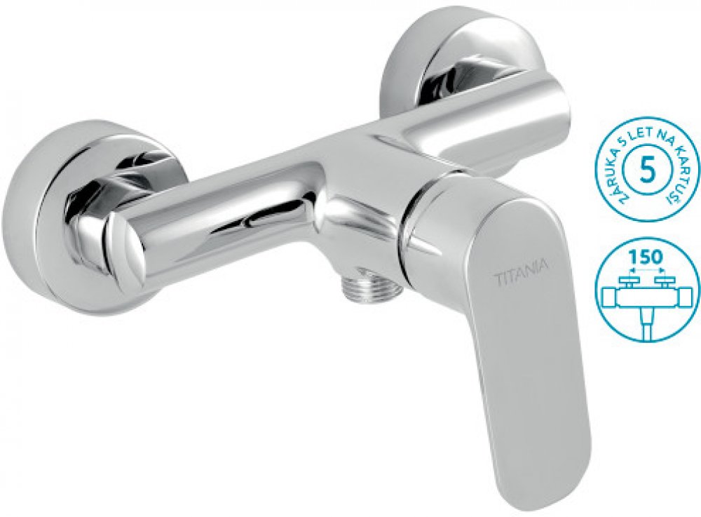 Sprchová nástěnná baterie 90261/1,0 se spodním vývodem, s roztečí 150 mm. Kvalitní a odolná keramická kartuše 35 mm s prodlouženou zárukou 5 let. Prvotřídní chromové provedení. Málo peněz za hodně muziky. Pokud hledáte elegantní design v ekonomické ceně, TITANIA COSMOS bude pro vás správnou volbou.