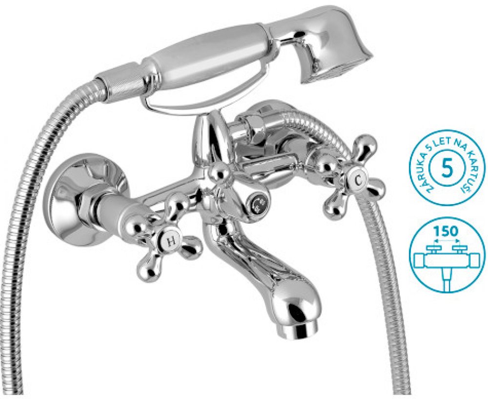 Novaservis nástěnné vanové koupelnové stříbrné kohoutkové 150 mm chromové retro