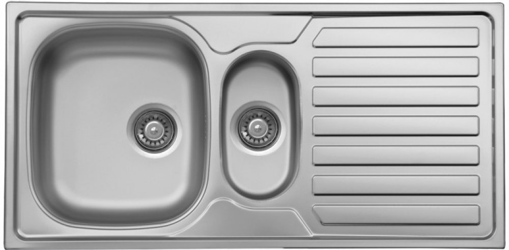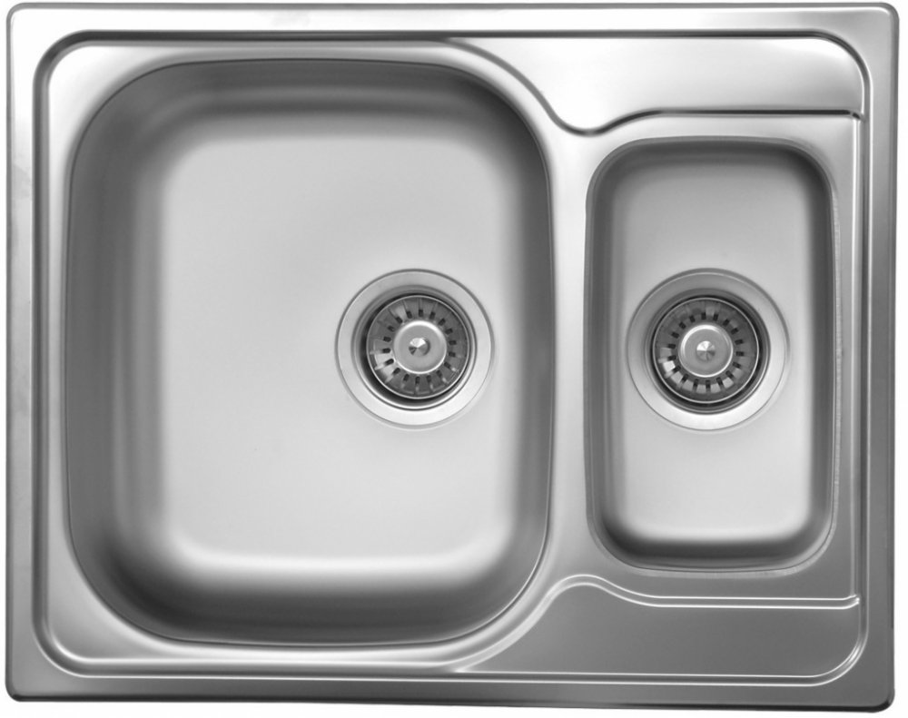 Praktický nerezový dřez z kvalitní oceli AISI 304 nabízí inovativní řešení s druhou menší vaničkou místo klasické odkapávací plochy. Toto uspořádání poskytuje větší flexibilitu při mytí nádobí.