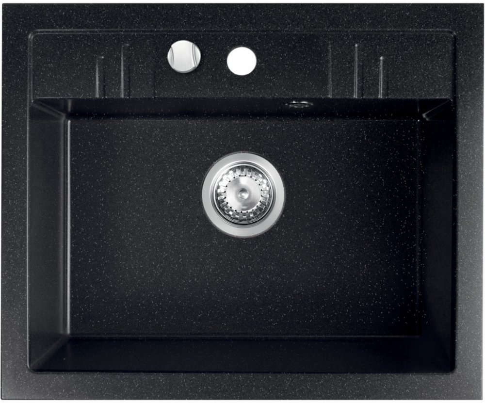 Granitový dřez s přepadem. Dřez má rozměry 58x48 cm a hloubku 17,6 cm. Automatické otevírání a zavírání výpusti knoflíkem. Součástí balení je sifon. Prodloužená záruka 15 let.