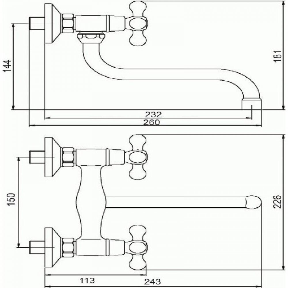 Novaservis nástěnné umyvadlové koupelnové stříbrné kohoutkové 150 mm chromové retro