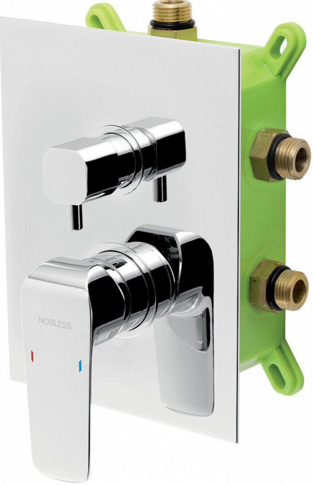 Kvalitní a odolná keramická kartuše 35 mm s prodlouženou zárukou 5 let. Prvotřídní chromové provedení. Vanová a sprchová podomítková baterie s boxem a keramickým přepínačem pro 3 vývody. Box je dodávaný komplet včetně krytu a ovládací páky.