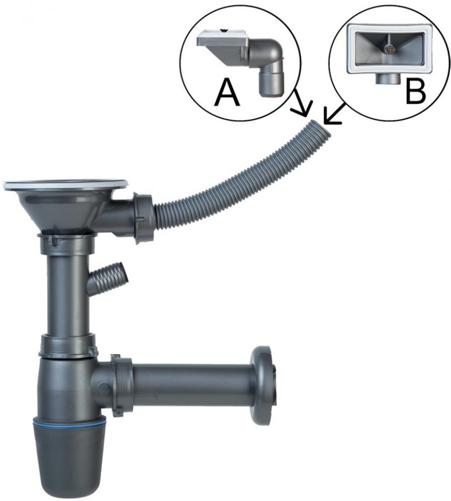 Sifon pro dřez s přepadem, 89 mm, plast Vhodný pro dřezy DR48/64, DR45/58, DR43, DR49/78, DR44/74, DR49/78R, DR51, DR51TS, DR49/77R DR48/64TSFoto je ilustrační - sifon musí splňovat funkčnost. Umístění přepadového vyústění a typ a tvar spodní části sifonu může být odlišné.
