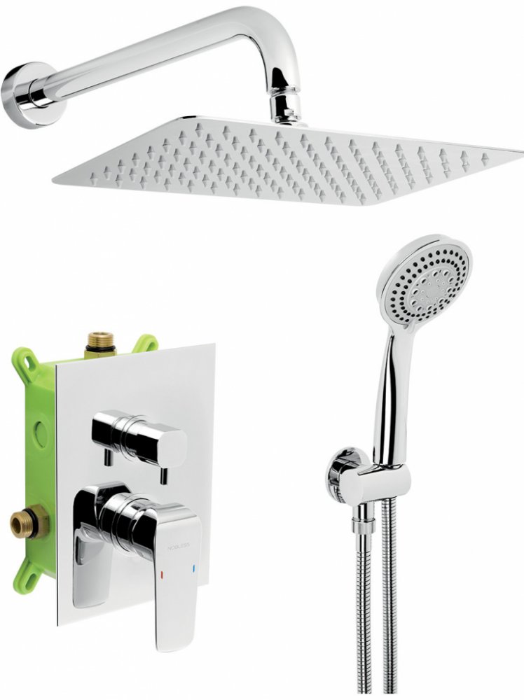 Dokonalé křivky ze série TINA. Oblíbený vzhled a špičková kvalita. Líbivý a moderní design rovných a oblých hran. Servis až k vám domů.Sprchová podomítková sada s příslušenstvím v provedení chrom. Box je dodávaný komplet včetně krytu a ovládací páky. Sada obsahuje podomítkovou sprchovou baterii BOX38051R,0 s kvalitní keramickou kartuší s prodlouženou zárukou 5 let a keramickým přepínačem, kovovou hadici H/7000,0 150 cm, ramínko ze zdi RAM350,0 v délce 350 mm, hlavovou sprchu ve SLIM designu RUP/203,4 v rozměru 300 x 200 mm, 3-polohovou ruční sprchu RU/893,0 a stěnový vývod vody s držákem na ruční sprchu D/LUXUS,0 . EAN: 8590309087151