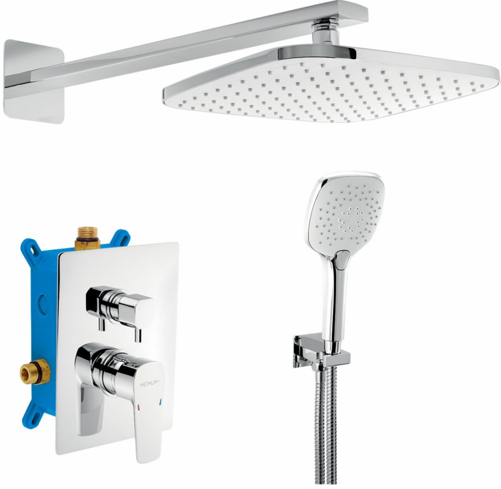 Sprchová podomítková sada s příslušenstvím v provedení chrom. Box je dodávaný komplet včetně krytu a ovládací páky. Sada obsahuje podomítkovou sprchovou baterii s keramickou kartuší KEROX s prodlouženou zárukou 7 let, hadici 150 cm, hlavovou sprchu v rozměru 230x230 mm, úspornou 3-polohovou ruční sprchu a hranatý stěnový vývod vody s držákem na ruční "sprchu. < KOMFORT - INOVACE jsou 4 hlavní pilí...