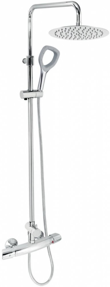 Sprchová souprava SETECO/TER,0 ECO vč. termostatické sprchové baterie 57963. Prvotřídní chromové provedení. Set obsahuje nástěnnou, termostatickou sprchovou baterii s horním vývodem a roztečí 150 mm s kvalitní a odolnou termostatickou kartuší KEROX s prodlouženou zárukou 7 let. Součástí balení je kovová sprchová hadice 150 cm, hlavová sprcha s průměrem 250 mm, úsporná ruční sprcha s 1 typem proudu...