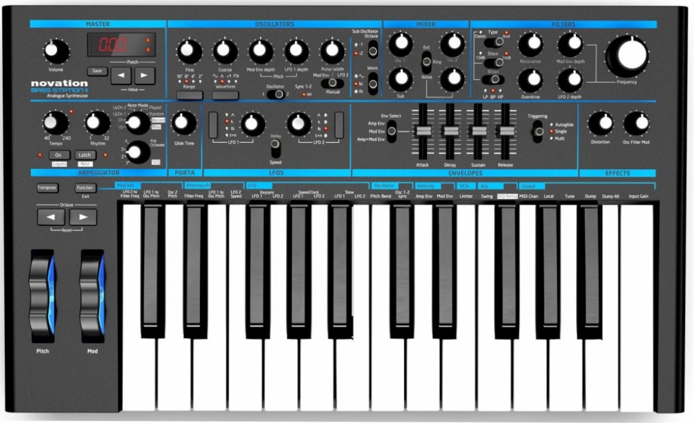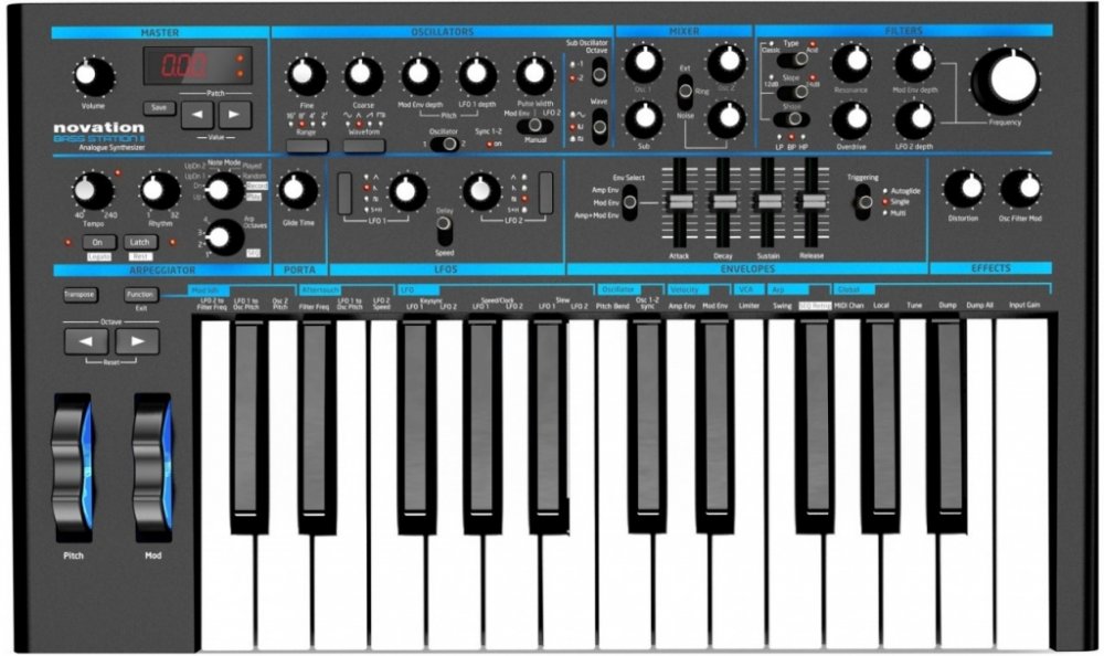 Bass Station II je analogový monofonní syntezátor, který vyniká zejména v basech. Jeho zvukové jádro je ale univerzální, takže z tohoto "mrňouse" dostanete rovněž ostré leady a arpeggia, která obohatí vaši tvorbu. Bass Station 2 navazuje na svého předchůdce Bass Station, ovšem přináší nový design, efekty, filtery a mnoho dalšího.