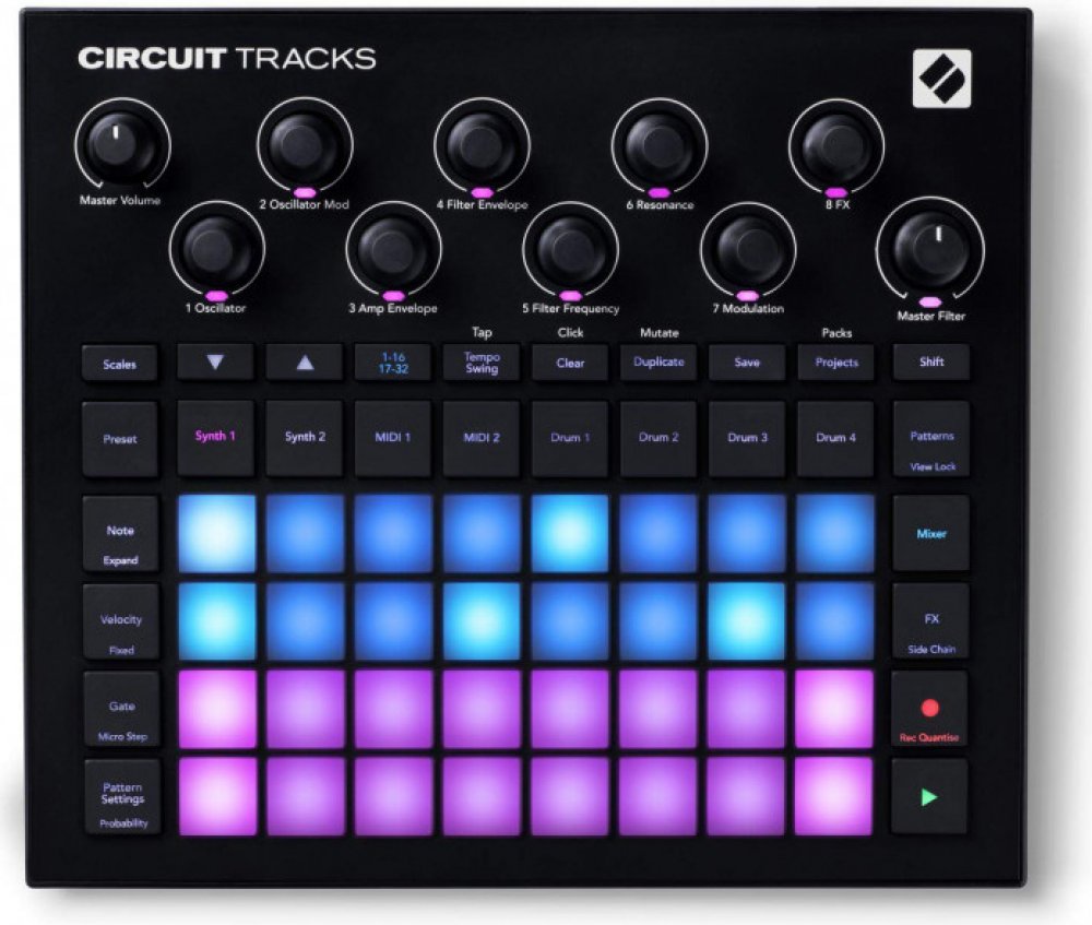 Novation Circuit je pokročilý groovebox a produkční stanice, s jejíž pomocí vytvoříte masivní beaty, syntezátorové linky, plnohodnotné kompozice a hlavně celé tracky během chvilky.