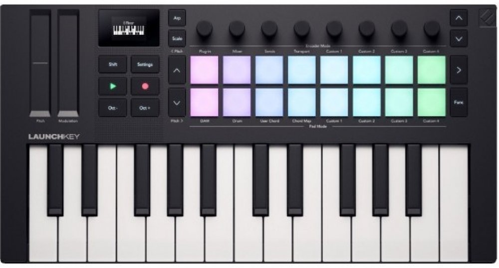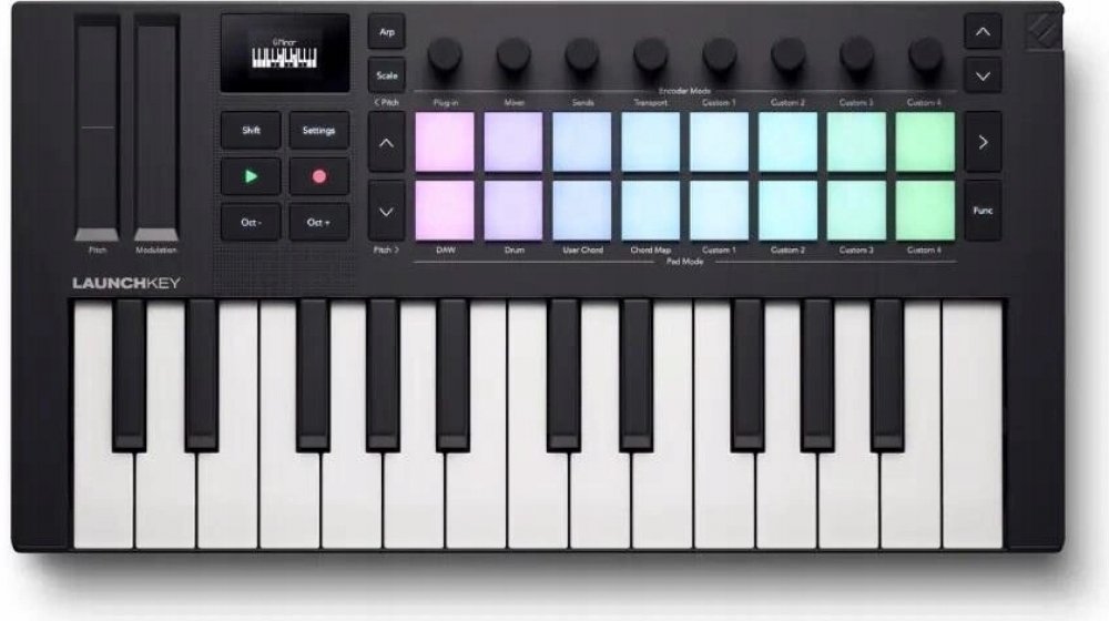 Launchkey Mini 25 MK4 od Novation je kompaktní a výkonný DAW kontrolér navržený pro zlepšení vašeho kreativního procesu. Zde jsou některé z jeho klíčových vlastností:25 mini-kláves ve stylu syntetizéru: Perfektní pro hraní nástrojů a tvorbu beatů.16 padů citlivých na dynamiku: Tyto pady mají polyfonní aftertouch, což umožňuje expresivní a dynamické výkony.Výkonná integrace s DAW: Bezproblémově se integruje s hlavními DAW, jako jsou Ableton Live, Logic Pro, Cubase, Reason, FL Studio a Ardour. Tato integrace poskytuje praktickou kontrolu nad mixérem, zařízeními a efekty vašeho DAW.Generativní arpeggiátor: Snadno vytvářejte a upravujte hudební sekvence pomocí osmikrokového editoru.Režimy akordů a stupnic: Uzamkněte klávesnici do jedné z 30 různých stupnic, abyste eliminovali špatné tóny, a použijte režimy akordů pro rychlé hudební postupy.Detektor akordů: Zobrazuje aktuální akord na OLED displeji.Softwarový balíček: Obsahuje Ableton Live 12 Lite, syntezátory od GForce, Orchestral Tools, pluginy od Klevgrand a lekce od Melodics pro kompletní tvorbu a učení hudby.Konektivita: Obsahuje USB-C zásuvku, 3,5mm jack MIDI výstup a 1/4” jack pro sustain pedál.Tento kontrolér je navržen jako přenosný a uživatelsky přívětivý, což z něj dělá skvělou volbu pro hudebníky na cestách.Kromě standardní SW výbavy získáte také exkluzivní virtuální instrument GForce Bass Station, který představuje přesnou repliku klasického monofonního syntezátoru Novation z 90. let s řadou zcela nových funkcí. Nyní vám bude k dispozici 16 hlasů, více než 300 presetů, vestavěný arpeggiator a sekvencer, efekty a mnoho dalšího. GForce Bass Station přináší obrovskou všestrannost a kreativní potenciál. K dispozici jako AU, AAX, VST a VST3 plugin nebo standalone pro PC a Mac.