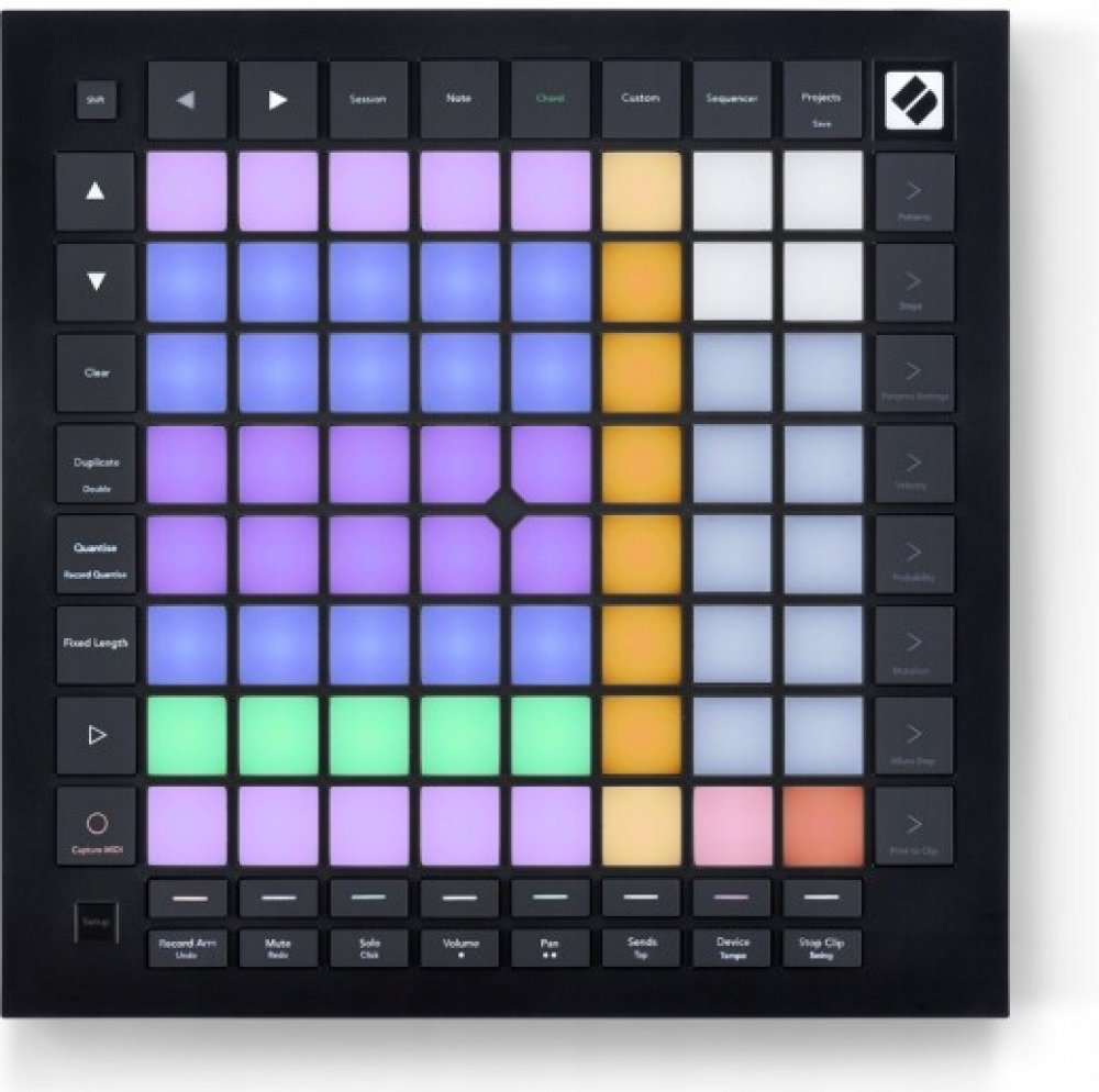 Na mřížce můžete snadno hrát noty, stupnice a akordy, protože Laucnchpad Pro rozsvěcí své pady v melodickém rozložení. Jakmile stisknete pad, dostanete zpětnou vazbu od RGB LED, pokud jste v režimu Standalone, můžete mřížku použít pro ovládání softwarových nebo hardwarových nástrojů.