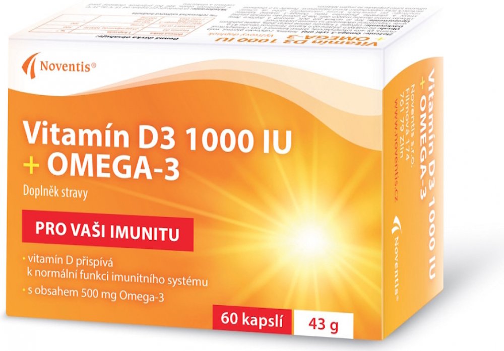 Noventis Vitamín D3 1000 IU + OMEGA-3 200 mg 60 kapslí