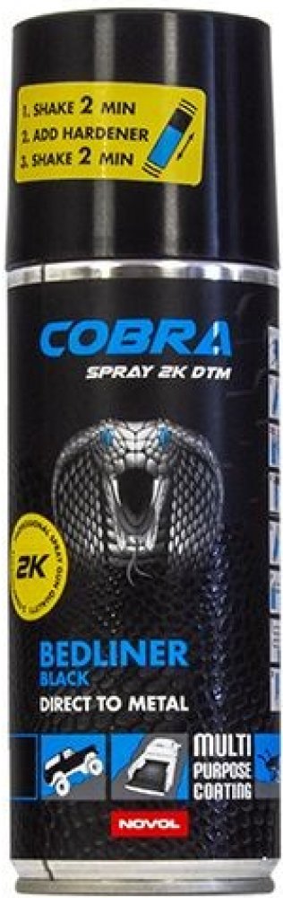 COBRA SPRAY 2K DTM (Direct To Metal) je speciální ochranný povlak, určený k ochraně kovových povrchů (ocel, ocel pozinkovaná, hliník). Chrání jak proti korozi (i bez použití antikorozního základního nátěru), tak proti mechanickému poškození.