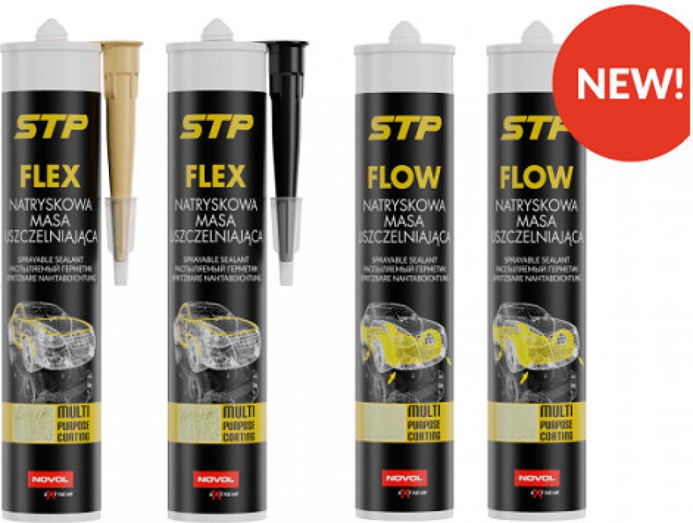 STP FLOW - ochrana karoserie, silná a trvale pružná vrstva, odolná proti nárazu kamenů. Zvukově izolační a odhlučňovací vlastnosti. Reprodukce originálních stehů a textur v automobilech. Mírná, rozlitá struktura prahového beránka.