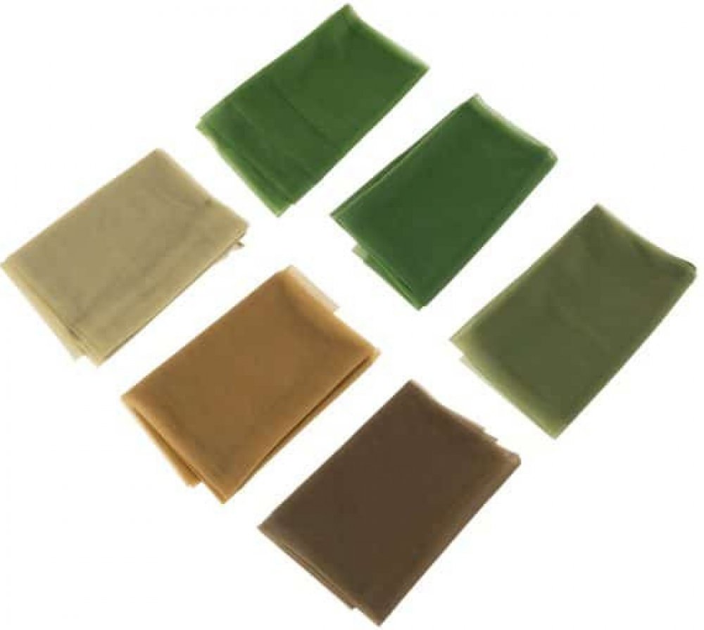 Lehká tkanina spolu s 6 barevnými variantami v jednom sáčku je přesně to, co vám zpříjemní tvorbu kamufláže doma a vyplatí se v terénu.