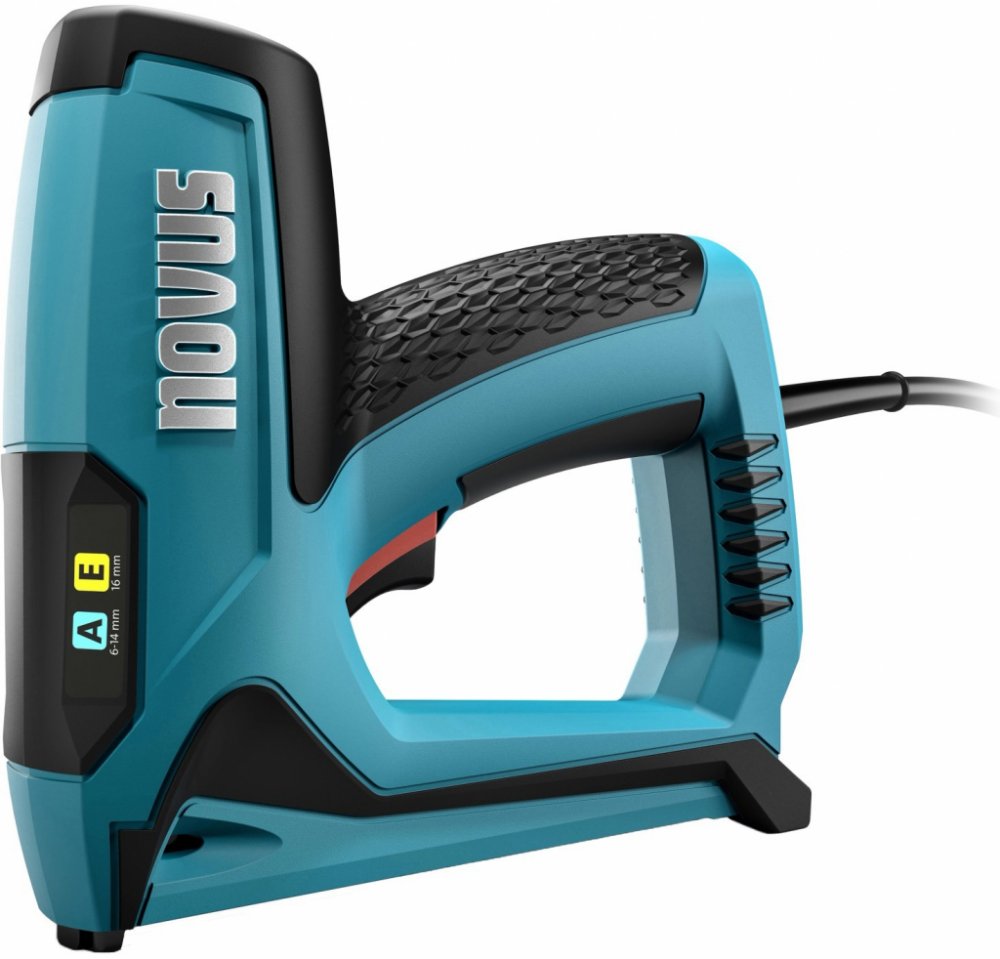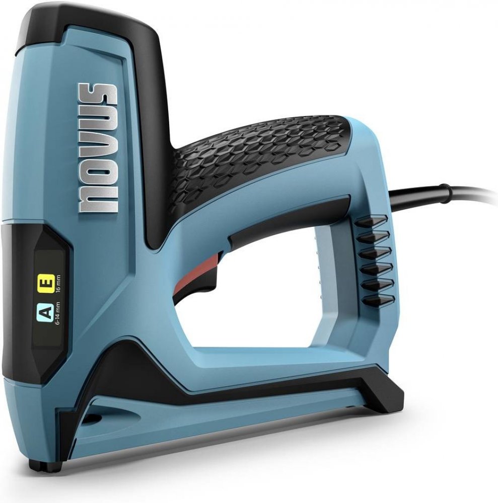 J-120 má 2metrový kabel. Lehce viditelné barevné piktogramy označují, které spony může elektrická sponkovačka zpracovat. Úzká a dlouhá tryska elektrické sponkovačky umožňuje přesné připevňování na těžko dostupných místech.