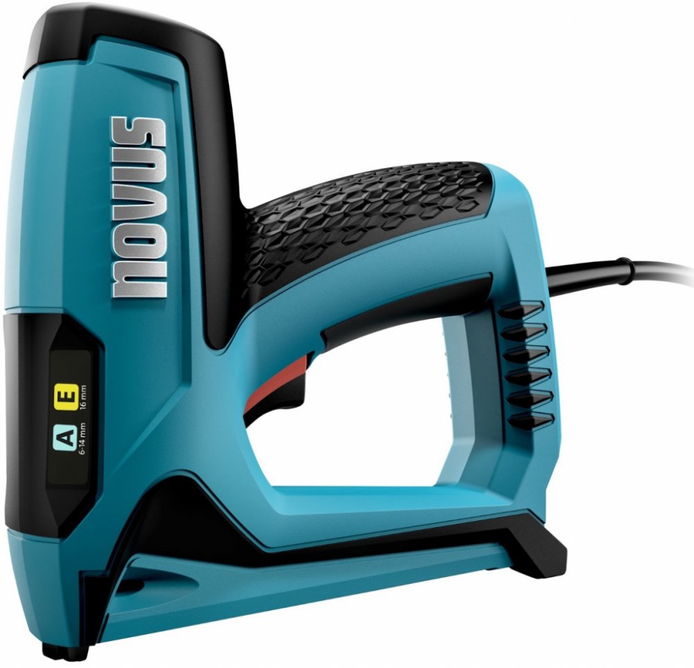 Integrovaný posuvník na spony pro rychlé nabíjení. Všechny části tvoří jeden celek bez volných dílů, které by se mohly ztratit. Technické informace o elektrické sponkovačce naleznete na štítku na pravé straně. Jednoduché připevnění kůže na čalounění.