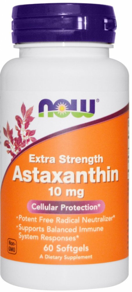 Astaxanthin je přírodní karotenoid, který se nachází především v řasách. Je rozpustný v tucích a má červeno-oranžovou barvu, kterou z něj přebírají do zbarvení svého masa i organismy, které se řasami s obsahem astaxanthinu živí (krevety, humři, lososi). NOW Astaxanthin je získáván z řas Haematococcus pluvialis (bez GMO), které jsou součástí planktonu a jeho přirozenou součástí je i xantofyly lutein a kantaxanthin a také další významný karotenoid betakaroten.