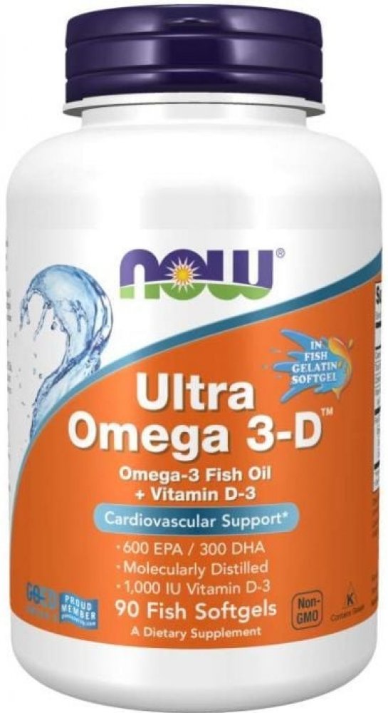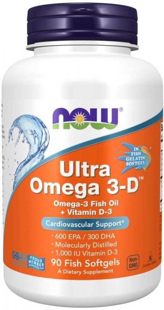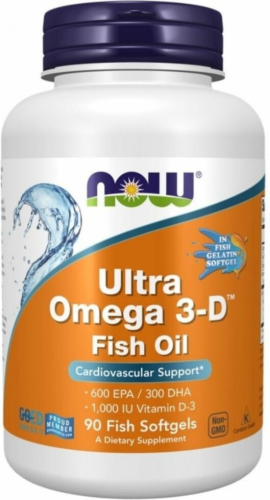 NOW FOODS Ultra Omega 3-D, Rybí olej + Vitamin D3, 90 softgel kapslí