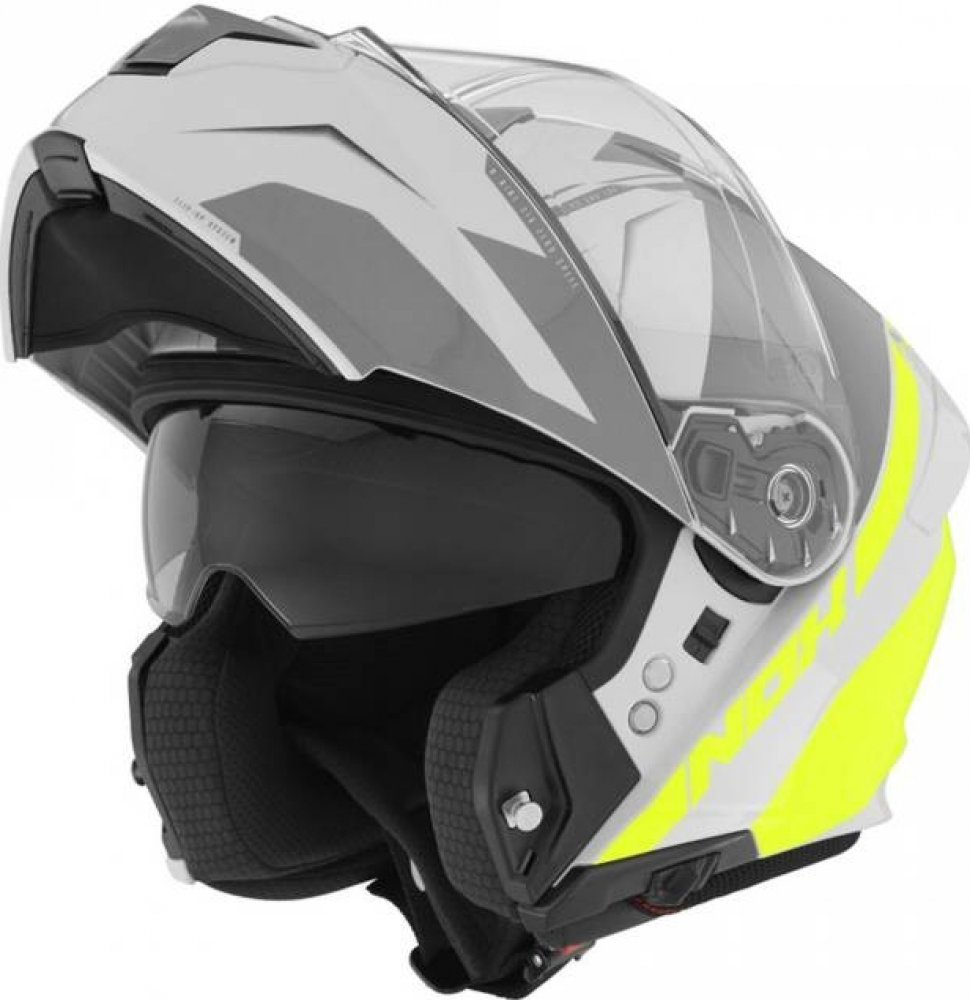 Výklopná přilba N960 je entry level sportovně cestovní přilba se sluneční clonou, která je tvořena polykarbonátovou skořepinou s použitím vysoce odolných materiálů.