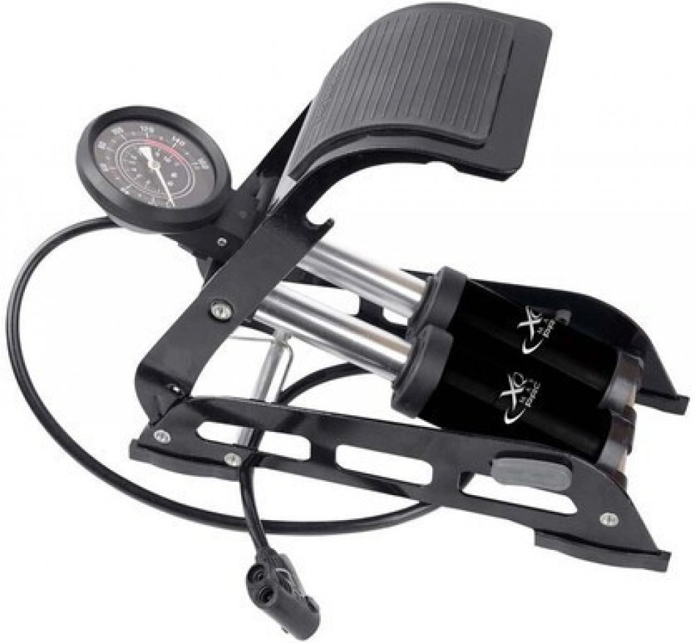 xqmaxpro jízdní kolo footpump s manometrem (manometr).steel vnější hliníková vnitřní tube.nylon ventil, pp základna, tpu hadice (délka hadice: 750mm).outertube dia: 44,5mm.total velikost: 297x129x75mm.weight 172gr.pressure: 0-160psi (11 bar).valve typ: schrade, dunlop a presta včetně jehel a trysky