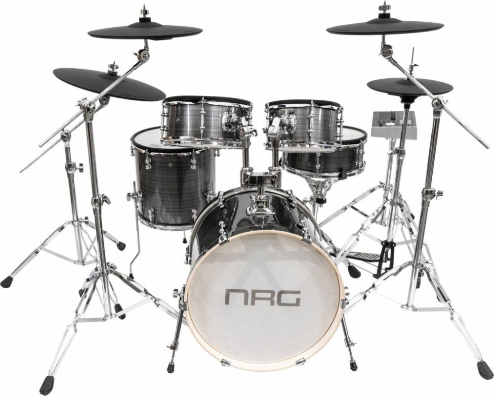 NRG EDK-1000 Pro Kit je prémiová elektronická sada bicích navržena tak, aby poskytla pocit, vzhled a rozložení plné akustické soupravy, přičemž nabízí veškerou flexibilitu a kontrolu moderních elektronických bicích. Se síťkovanými pady a gumovými činely namontovanými na klasických stojanech jako u akustické soupravy, tato sada poskytuje autentický zážitek z hraní pro pokročilé bubeníky i profesionály. Srdcem soupravy je modul EDK-1000, který nabízí vysoce kvalitní set funkcí včetně 40 přednastavených souprav a 40 uživatelsky definovaných souprav, 820 dynamických zvuků a širokou škálu profesionálních efektů jako pitch, reverb, delay, chorus, flanger, kompresor a EQ. Podporuje až 256-hlasovou polyfonii a umožňuje importování až 100 vlastních samplů s celkovou kapacitou 335 MB. Modul také obsahuje 70 skladeb na hraní s možností vypnutí bisích nebo doprovodné hudby, 3,2" TFT LCD displej, podporu USB MIDI a 9 samostatných fadrů pro individuální regulaci hlasitosti padů, skladeb a metronomu. Funkce nahrávání umožňuje uložit až 15 skladeb přímo do modulu. NRG EDK-1000 Pro Kit obsahuje také kompletní hardwarový balík, který zahrnuje robustní stojany pro všechny činely, tomy, modul, stojan na hi-hat, stojan na rytmičák a pedál na basový buben, což z něj činí komplexní řešení pro bubeníky, kteří hledají výkonnou elektronickou bicí soupravu připravenou. Konfigurace sady13" x 5.5" rytmičák se síťkovanou blánou20" x 16" kopák se síťkovanou blánou10" x 6" tom se síťkovanou blánou12" x 6" tom se síťkovanou blánou14" x 14" kotel se síťkovanou blánou2x 15" celogumový crash činel (s Edge zónou a Choke funkcí)18" celogumový ride činel (s Edge a Bell zónami a Choke funkcí)13" celogumový hi-hat činel Hardware v baleníHi-Hat stojanStojan na rytmičák3x čibenicový činelový stojanDržák na tomyStojan na modulPedál k basovému bubnu